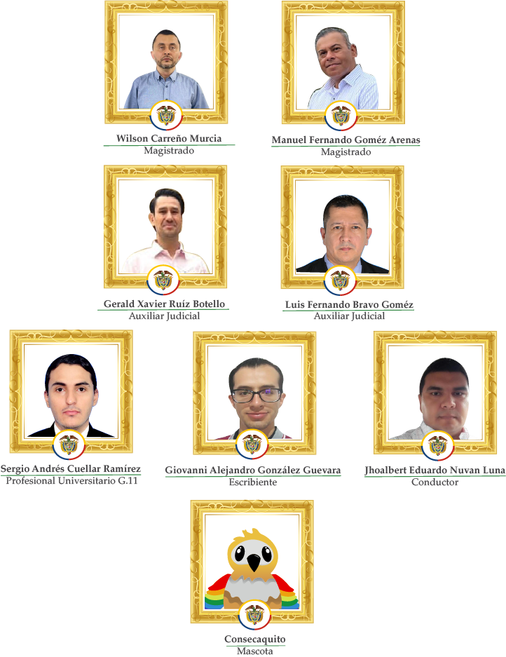 Conformado por dos (02) Magistrados, dos (02) Auxiliares Judiciales, 1 Profesional Universitario G. 11, 1 Escribiente y 1 Conductor.