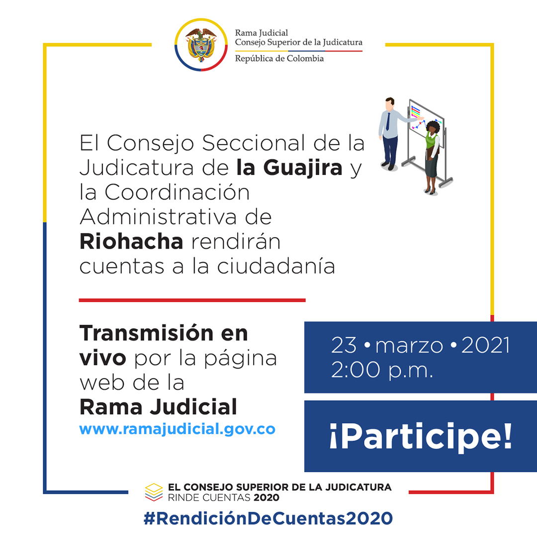 Participe en la rendición de cuentas del Consejo Seccional de la Judicatura de La Guajira y la Dirección Ejecutiva Seccional de Administración Judicial de Valledupar / oficina de Coordinación Administrativa de Riohacha.