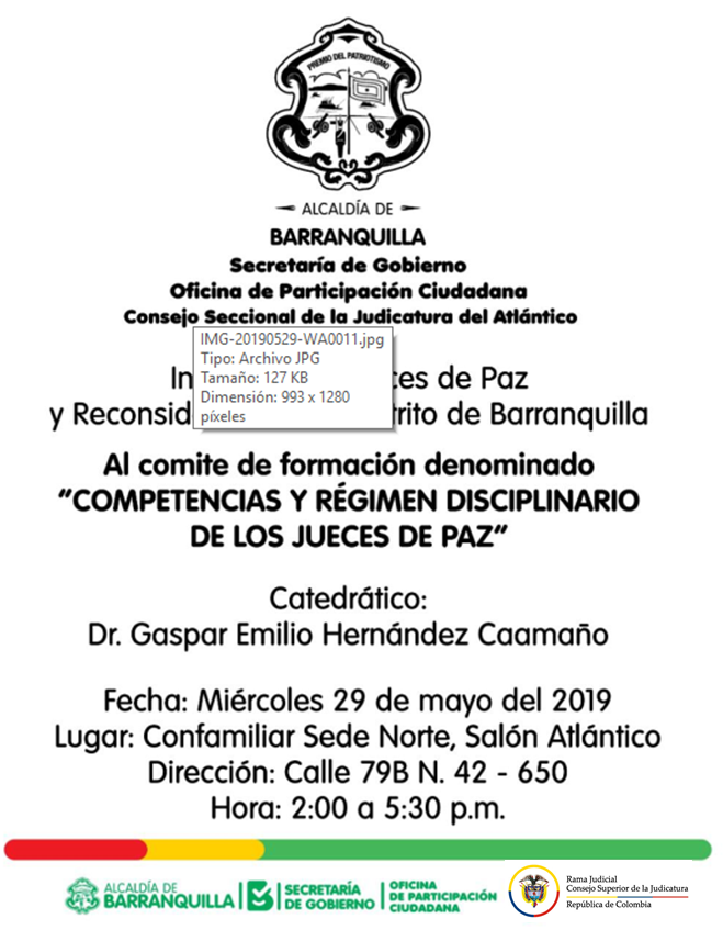 | Invitación al Cómite de Formación: Competencias y régimen Disciplinario de los Jueces de Paz | 28/05/2019 |