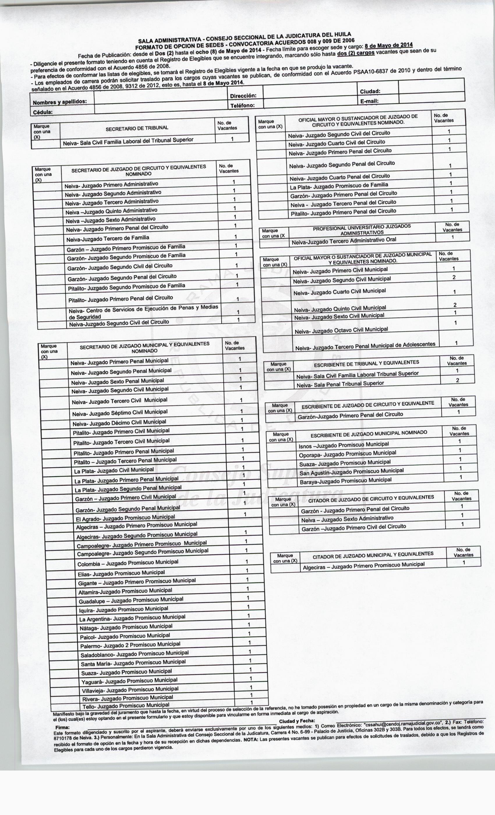 - Convocatoria No.4 de Empleados de Tribunales, Juzgados y Centro de Servicios