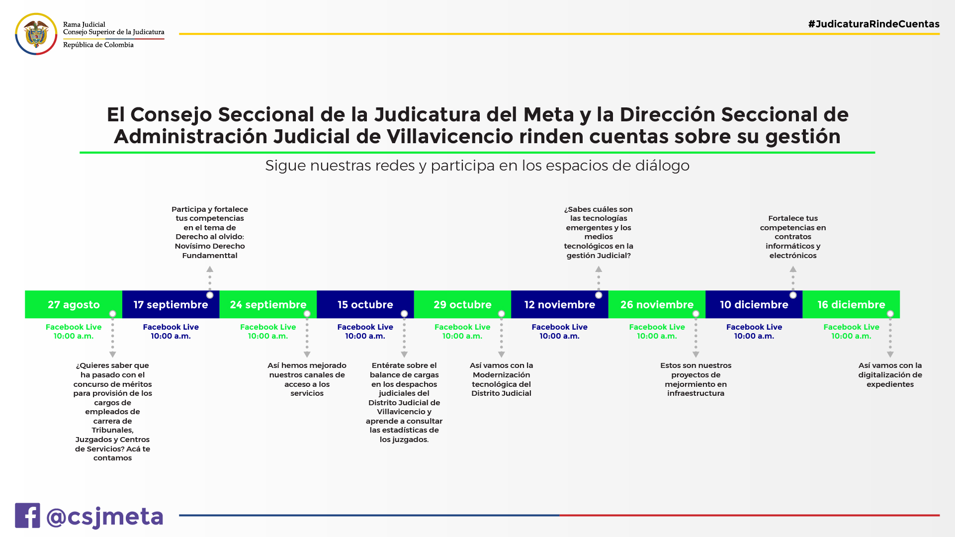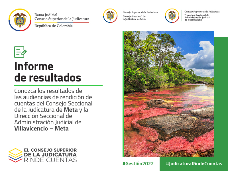 El Consejo Seccional de la Judicatura del Meta y la Dirección Seccional de Administración Judicial de Villavicencio invitan a la comunidad a participar en la audiencia pública de rendición de cuentas. Les compartiremos los resultados y avances de nuestra gestión en el año 2023. ¡Acompáñenos a conocer más sobre nuestro trabajo!