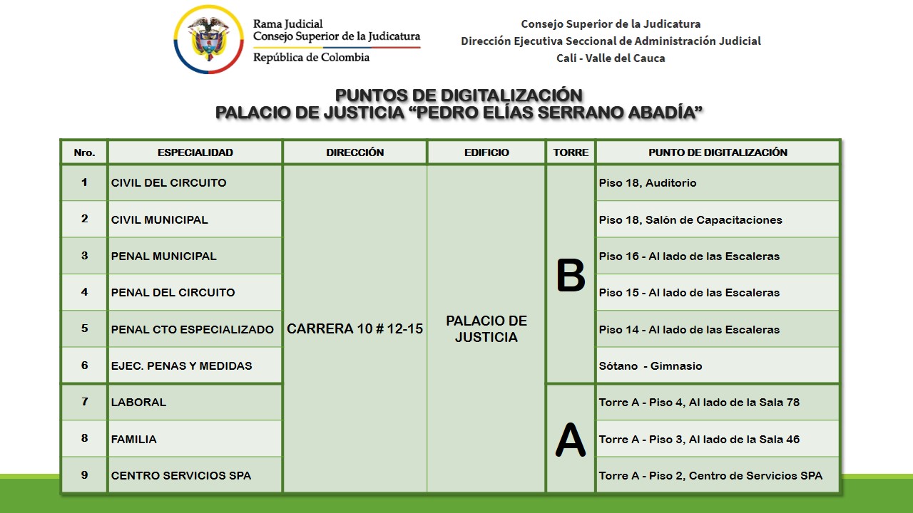 Puntos de Digitalización Contrato 104 DE 2020 - Palacio de Justicia Cali