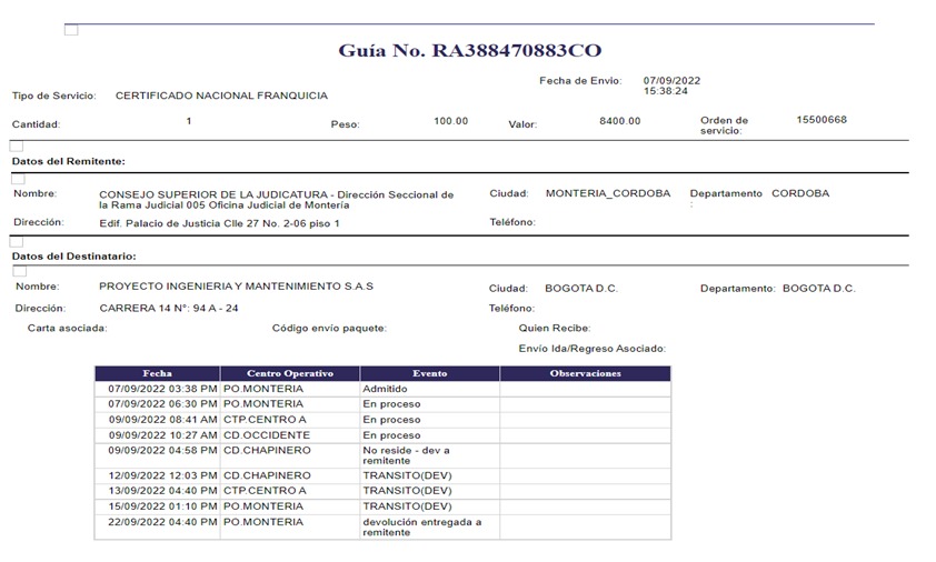 - RESOLUCION DESAJMOR22-1812 "Por la cual se sanciona con la exclusión a un parqueadero inscrito en el registro de la Dirección Ejecutiva Seccional de Administración Judicial de Montería, en el año 2022"