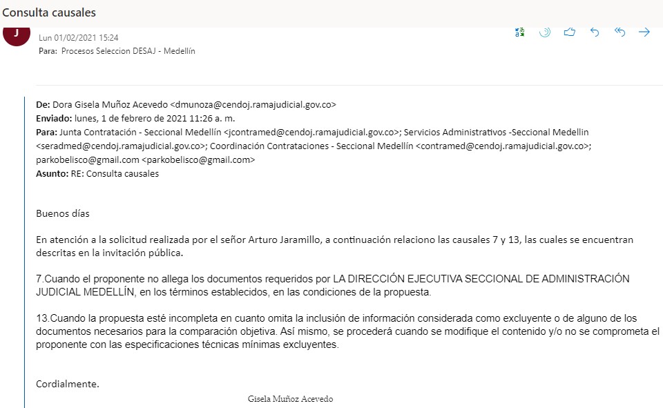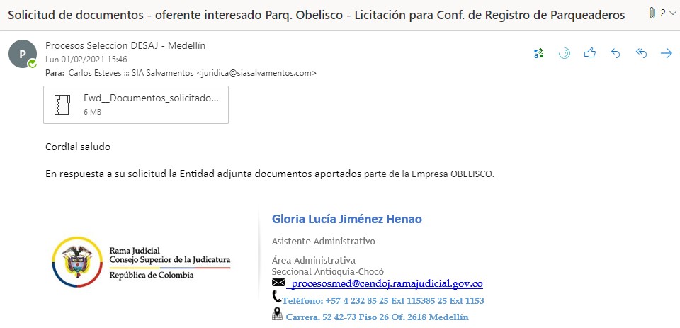 DE: DIRECCIÓN EJECUTIVA SECCIONAL DE ADMINISTRACIÓN JUDICIAL DE MEDELLÍN
