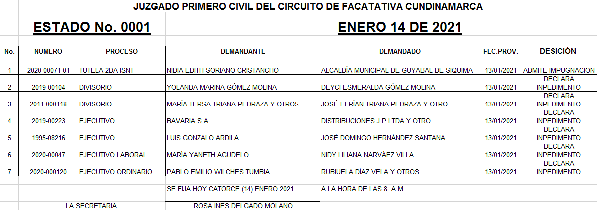 | ESTADO No.007 | VER ESTADO | 2020-00139 - 2019-00063 - 2021-00006 - 2021-00007 - 2021-00012 - 2021-00017 - 2021-00016 - 2021-00015 - 2021-00014 - 2021-00013 |