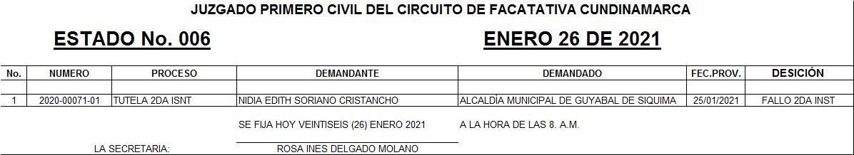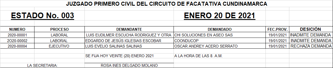 | ESTADO No. 020 | VER ESTADO | 2021-00003-01 |