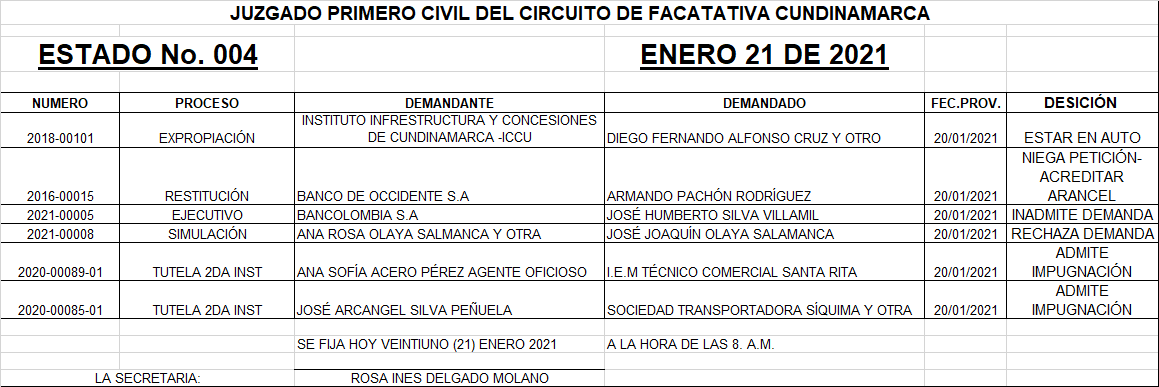| ESTADO No. 010 | VER ESTADO | 2021-00026 - 2021-00025 - 2021-00024 - 2021-00023 - 2020-00089-01 |