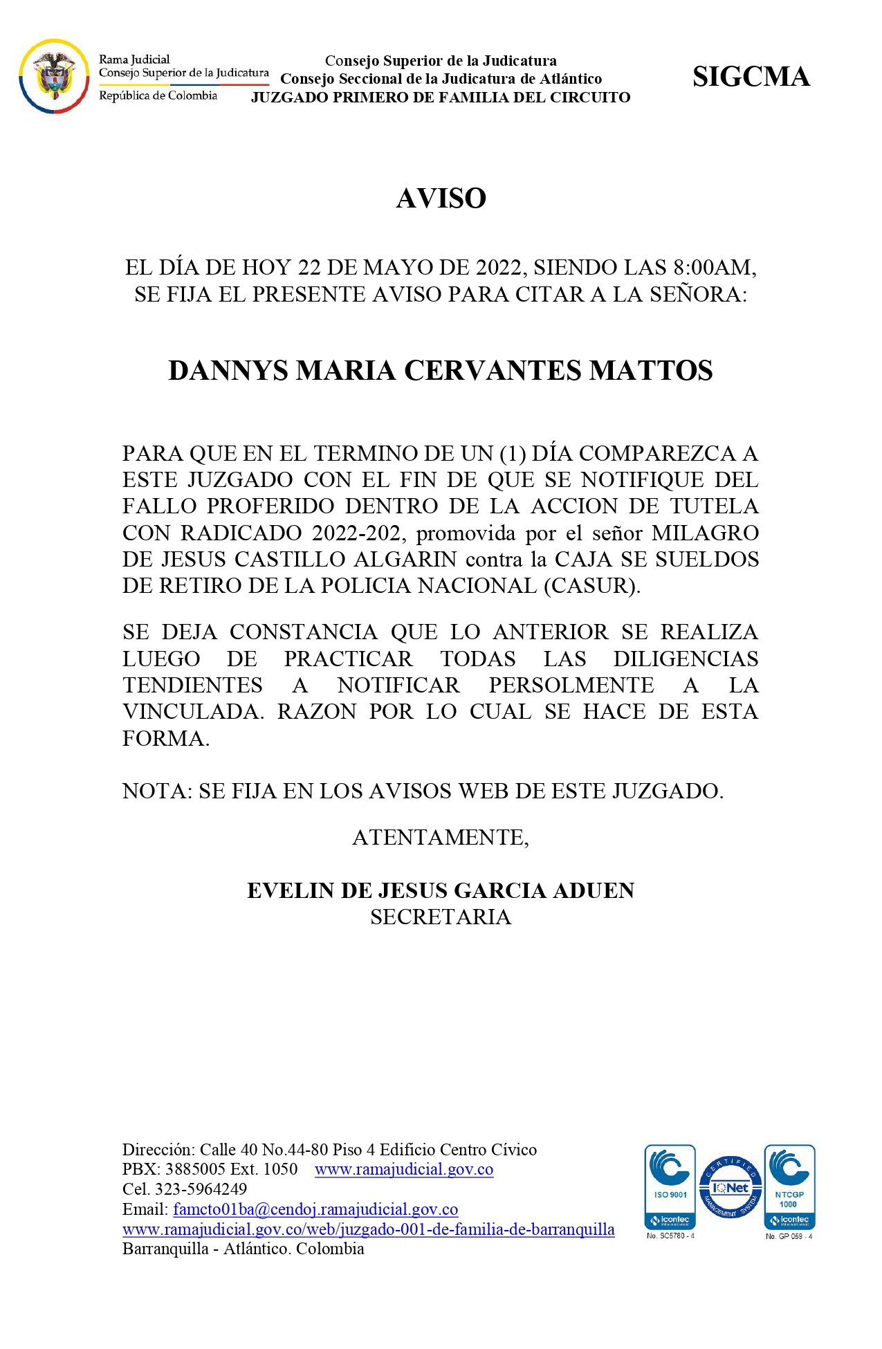 JUZGADO 001 DE FAMILIA DE BARRANQUILLA