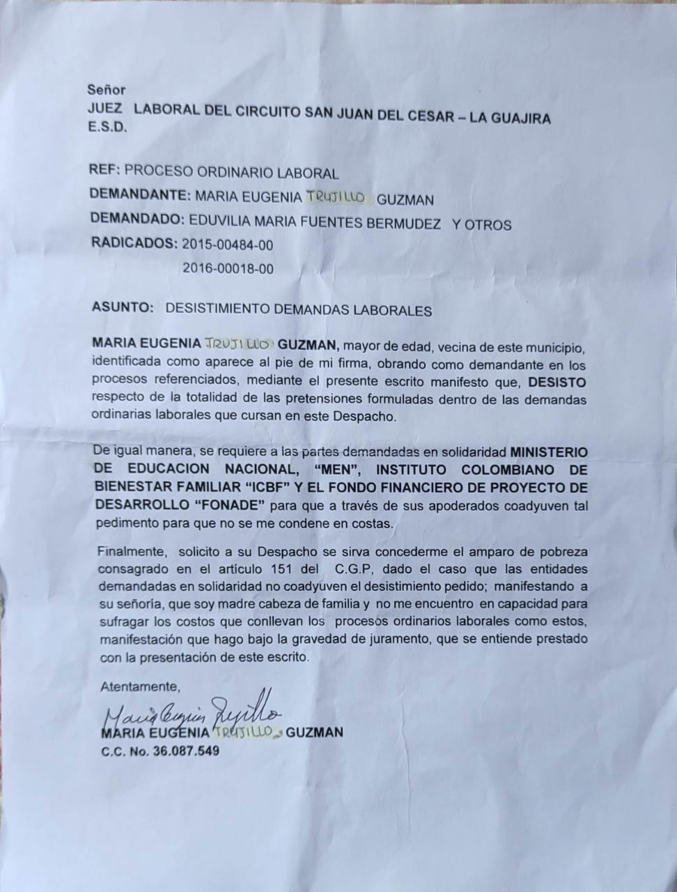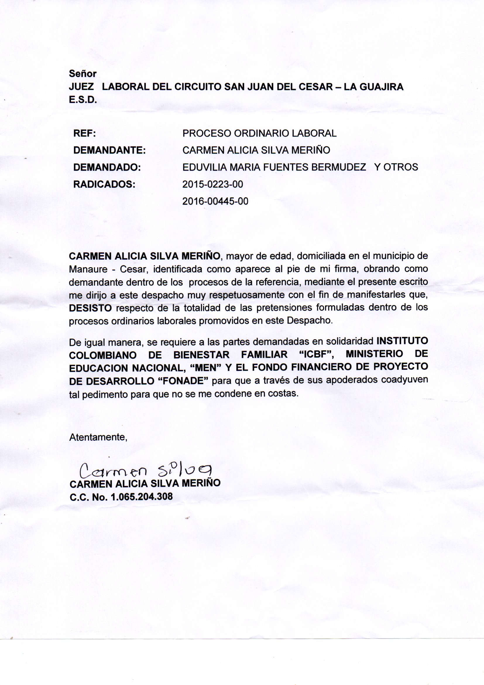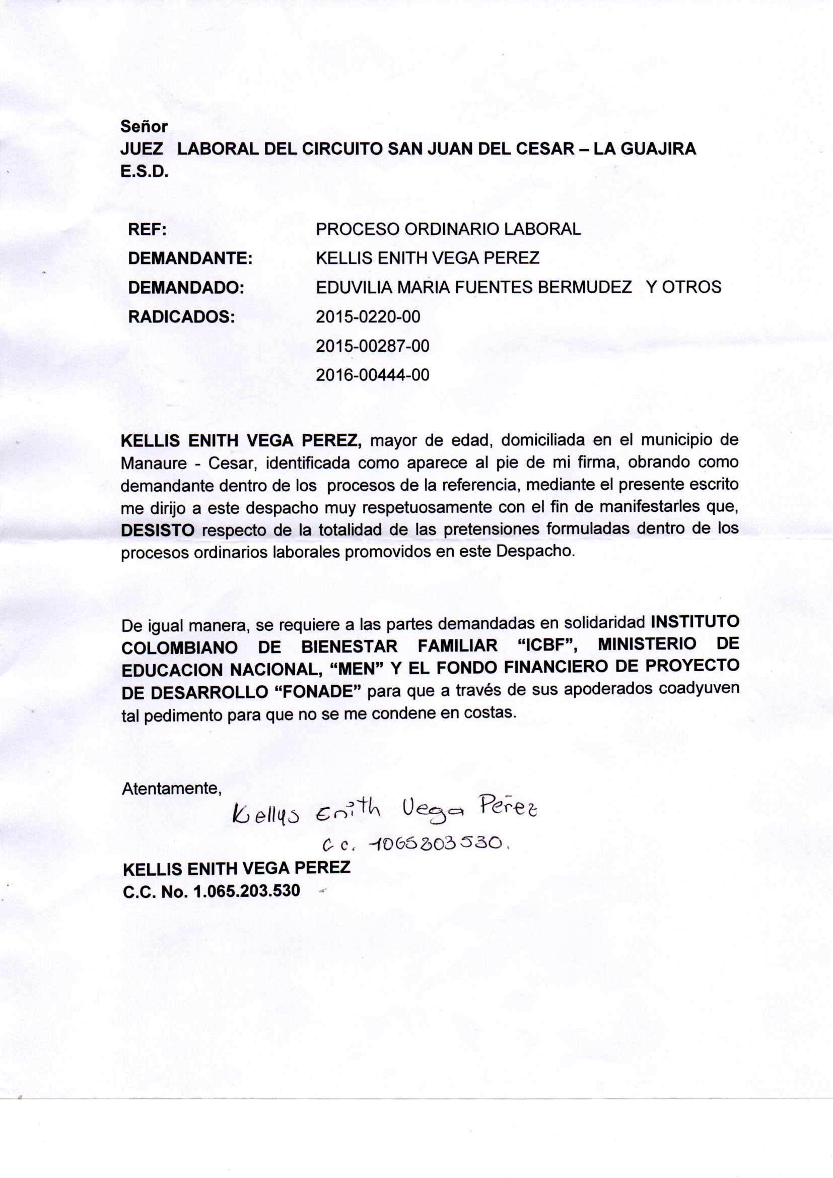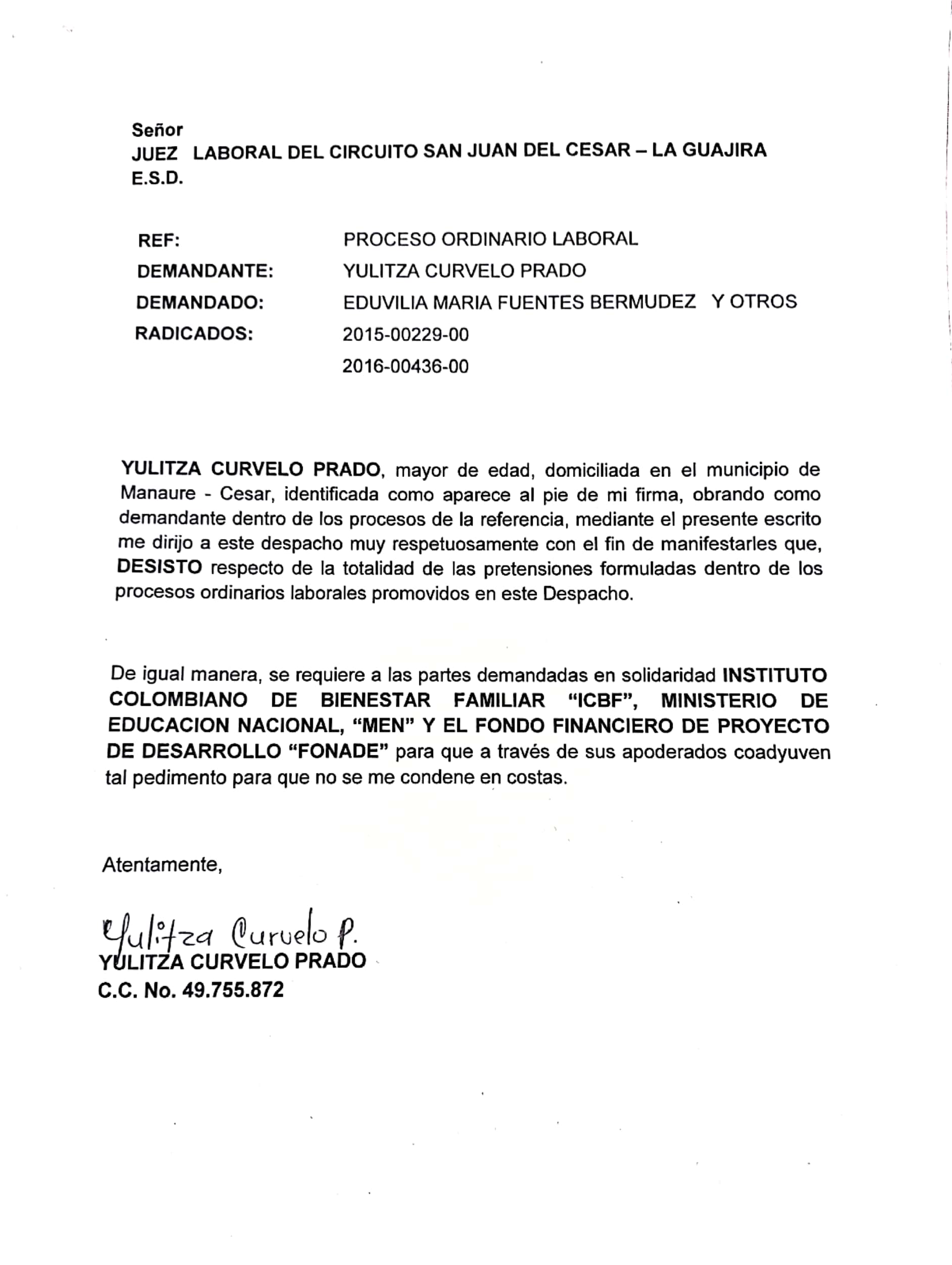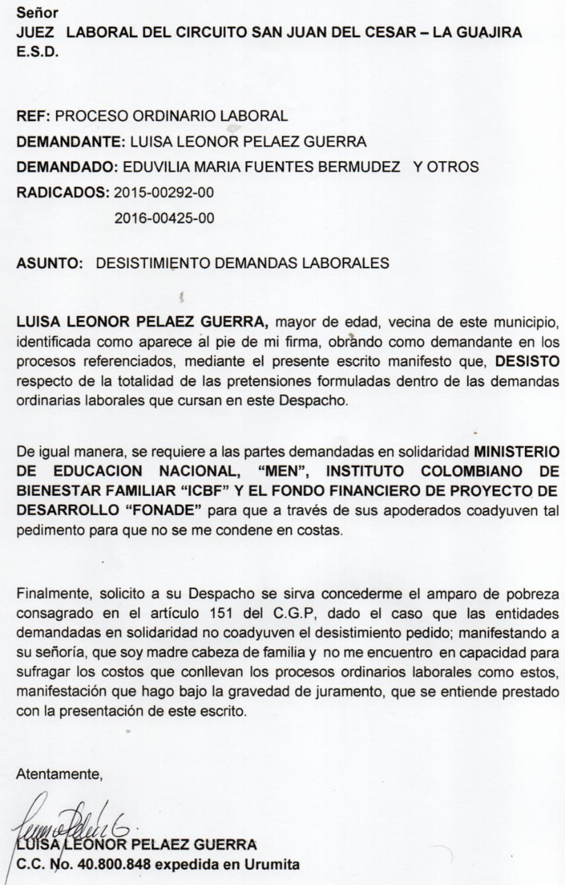 JUZGADO 001 LABORAL DEL CIRCUITO DE SAN JUAN DEL CESAR - LA GUAJIRA