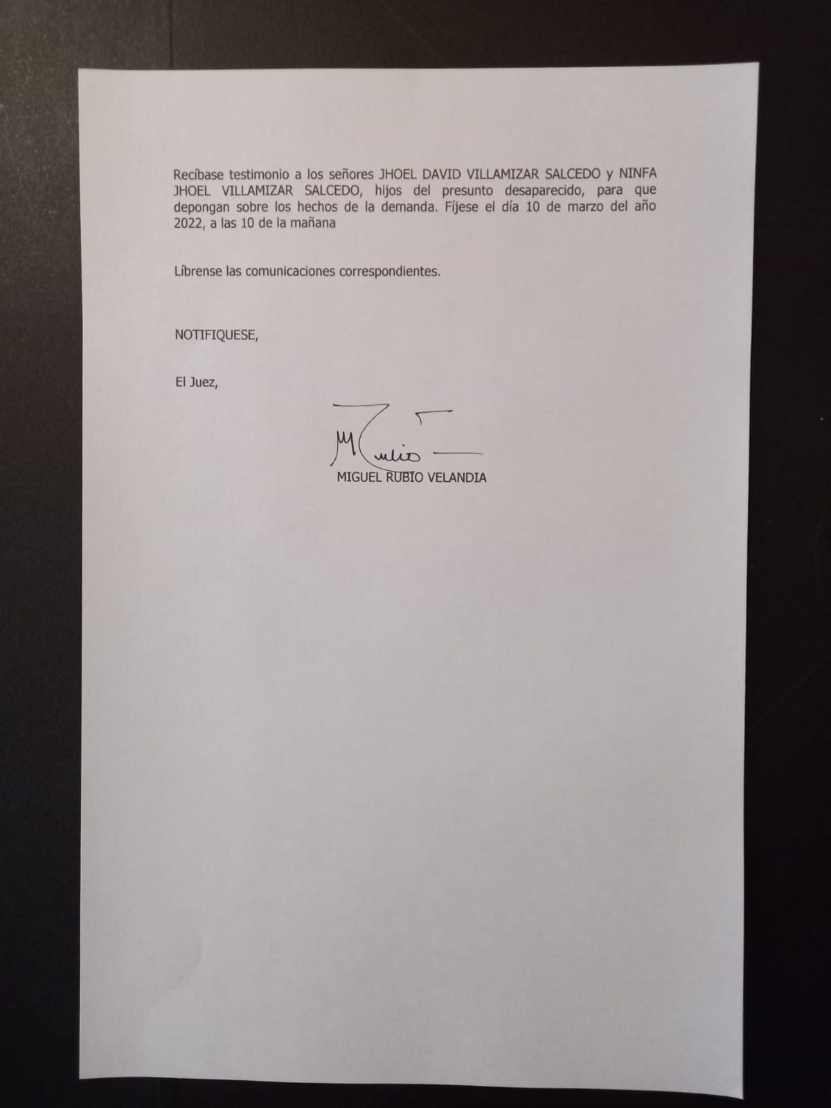 | 20/01/2022 | INVEST DE PATERNIDAD | ASTRID MEDINA | ELKIN CASTELLANOS | VER | 2019-00556 |