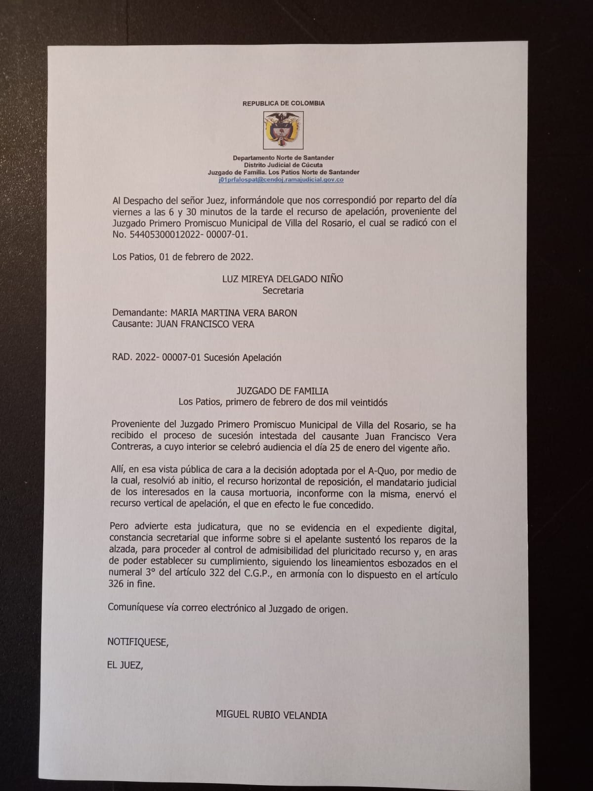 | 18/01/2022 | IMPUGNACION PATERNIDAD | CARLOS CARDENAS | LEIDY BELTRAN | VER | 2021-00764 |