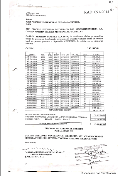 CORRE TRASLADO LIQUIDACIÓN DE CREDITO |