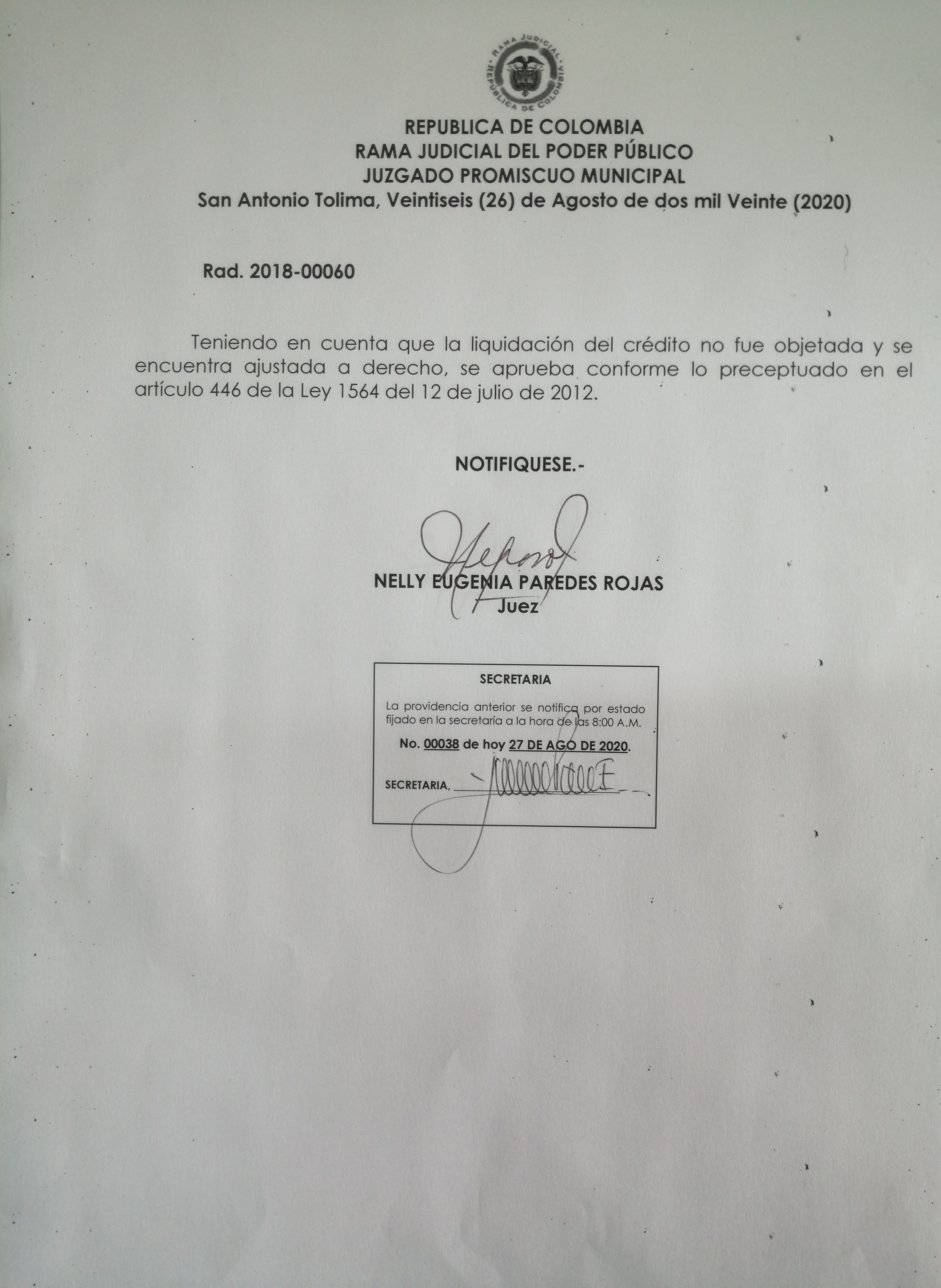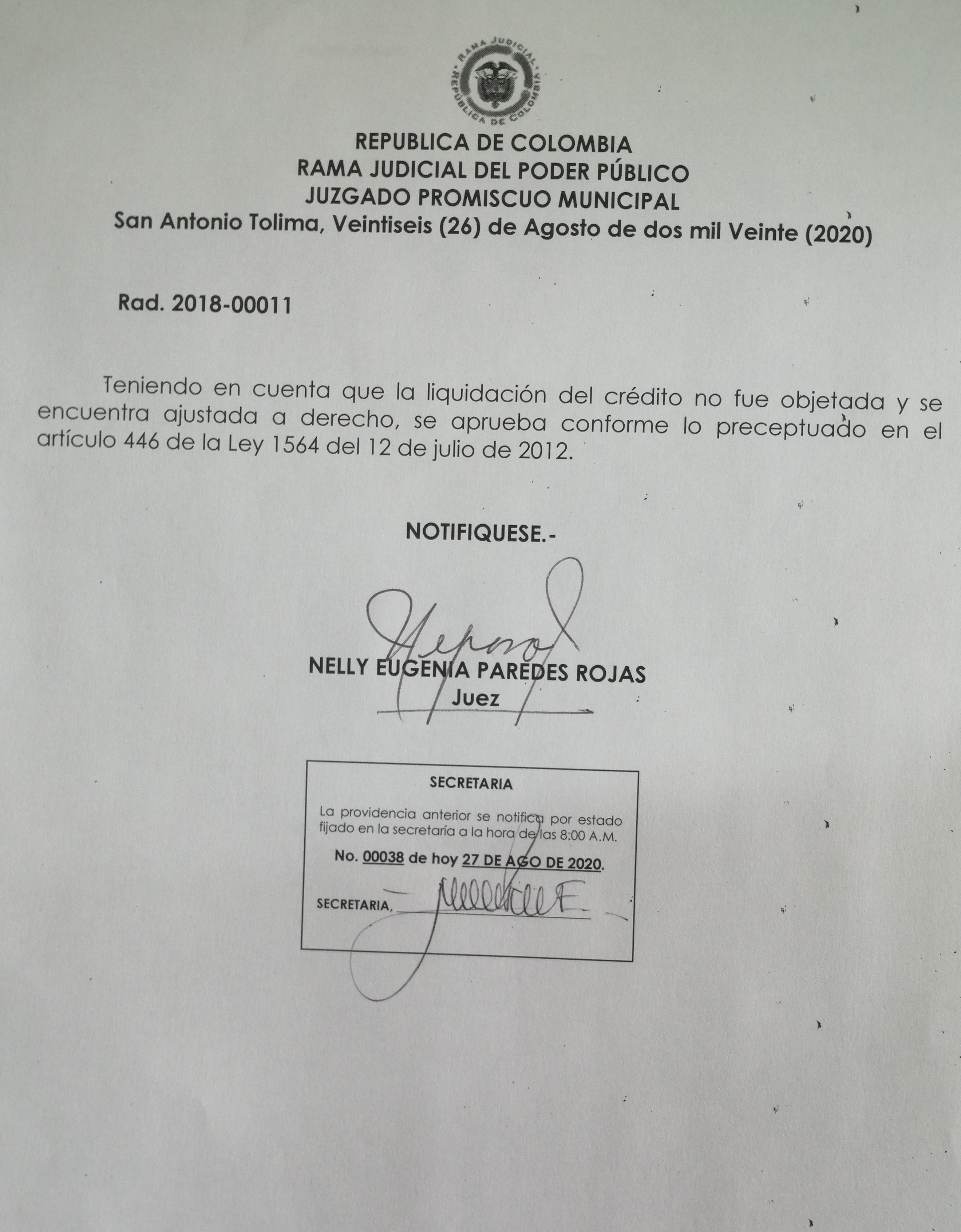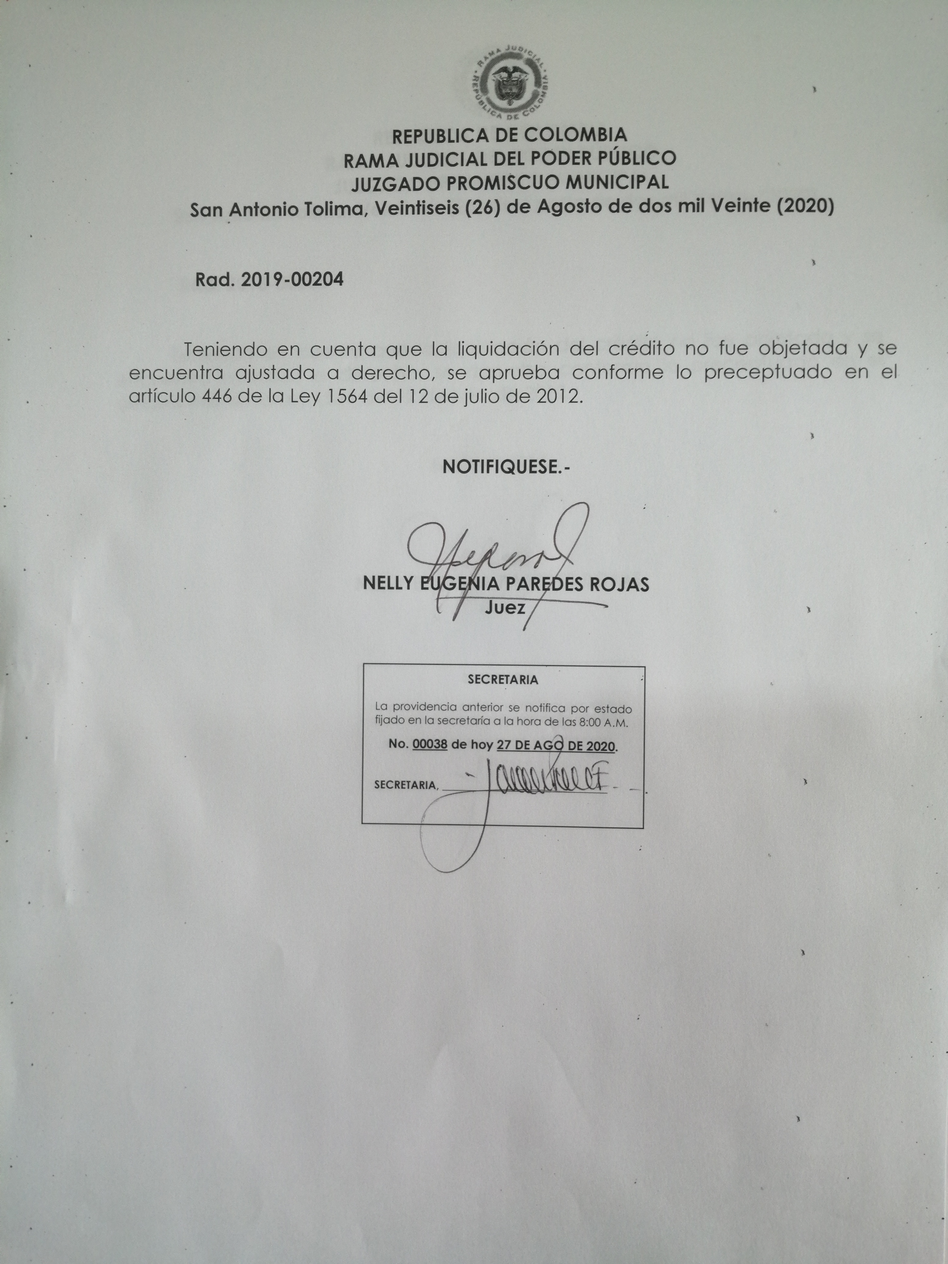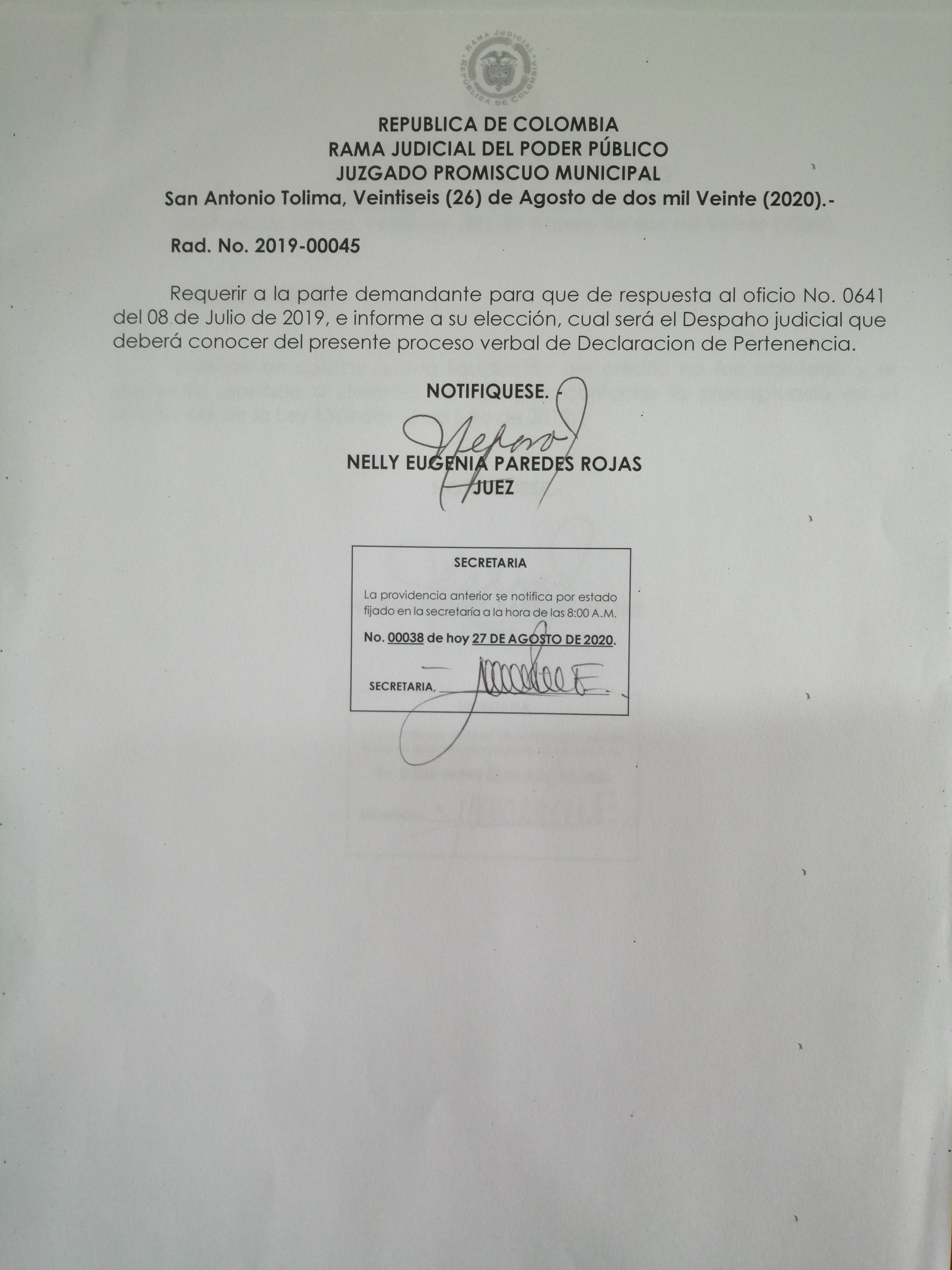 JUZGADO 001 PROMISCUO MUNICIPAL DE SAN ANTONIO - TOLIMA