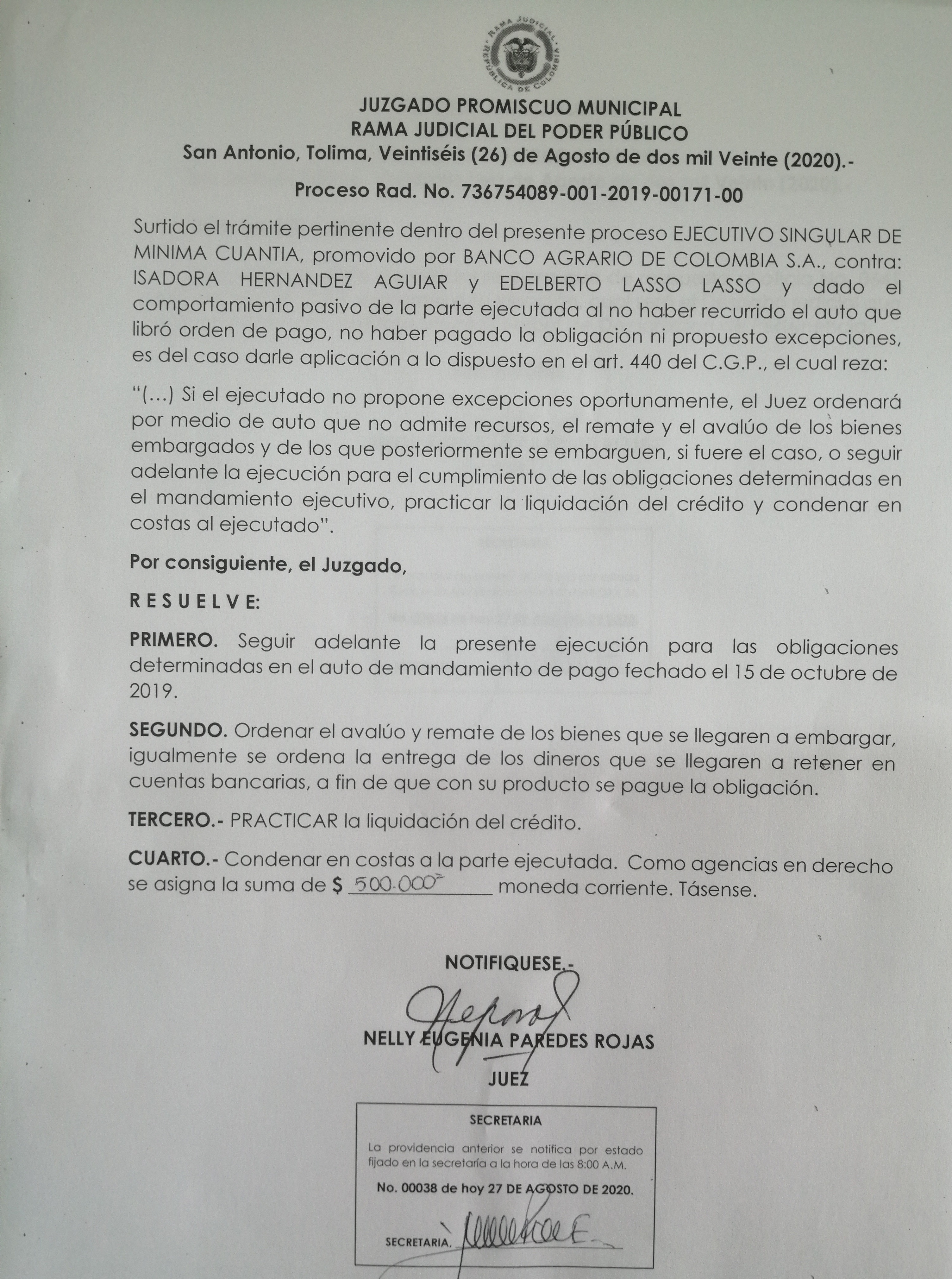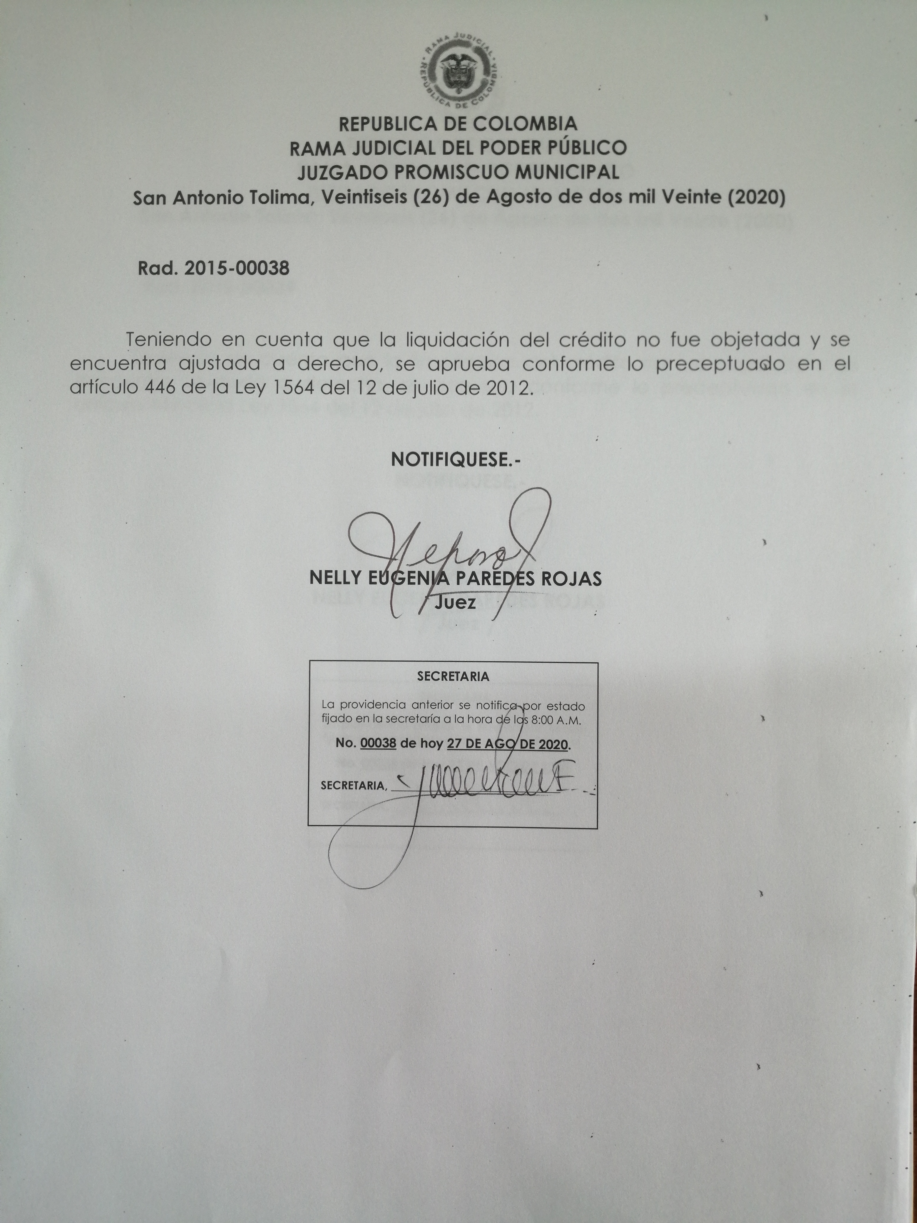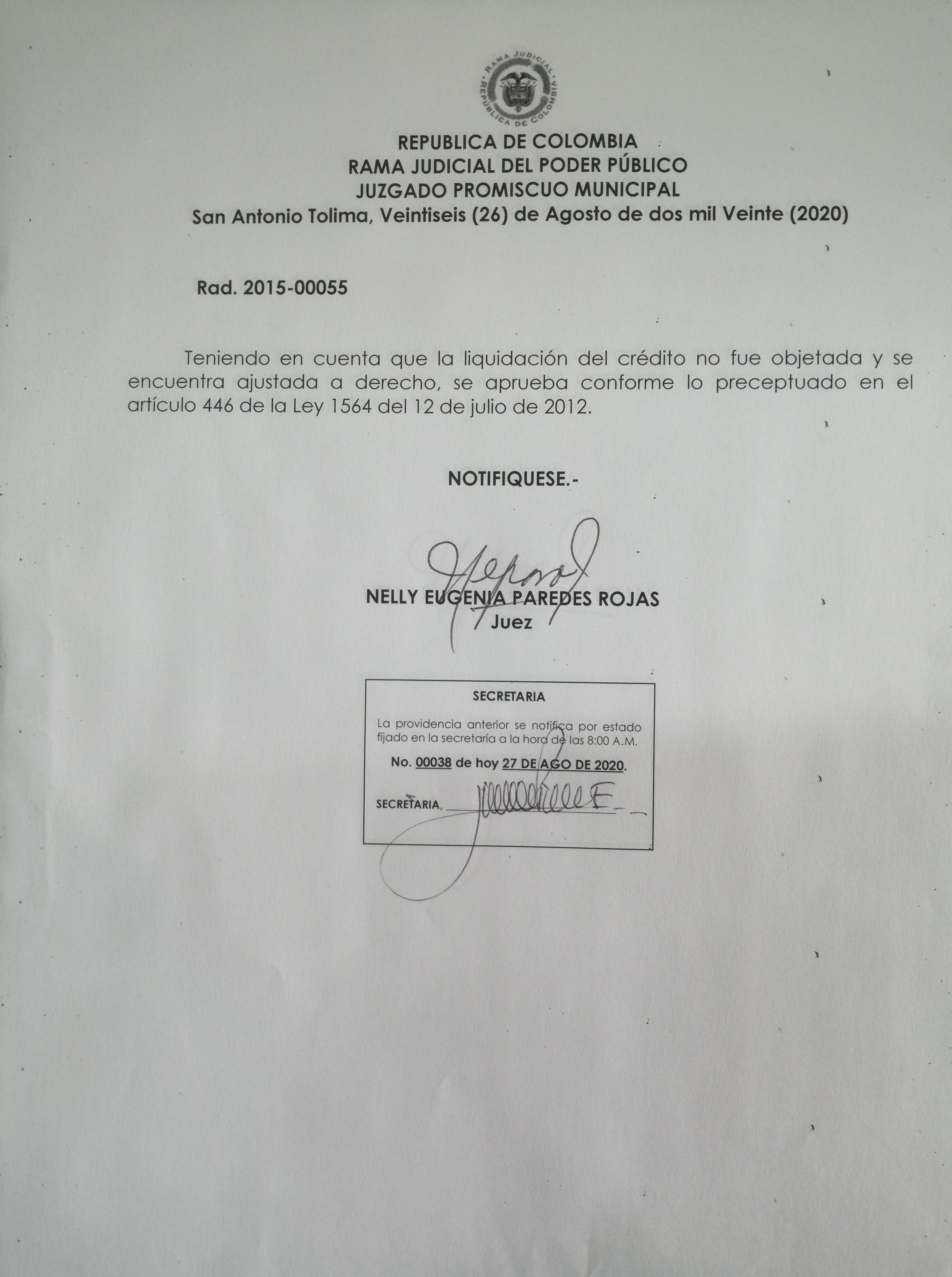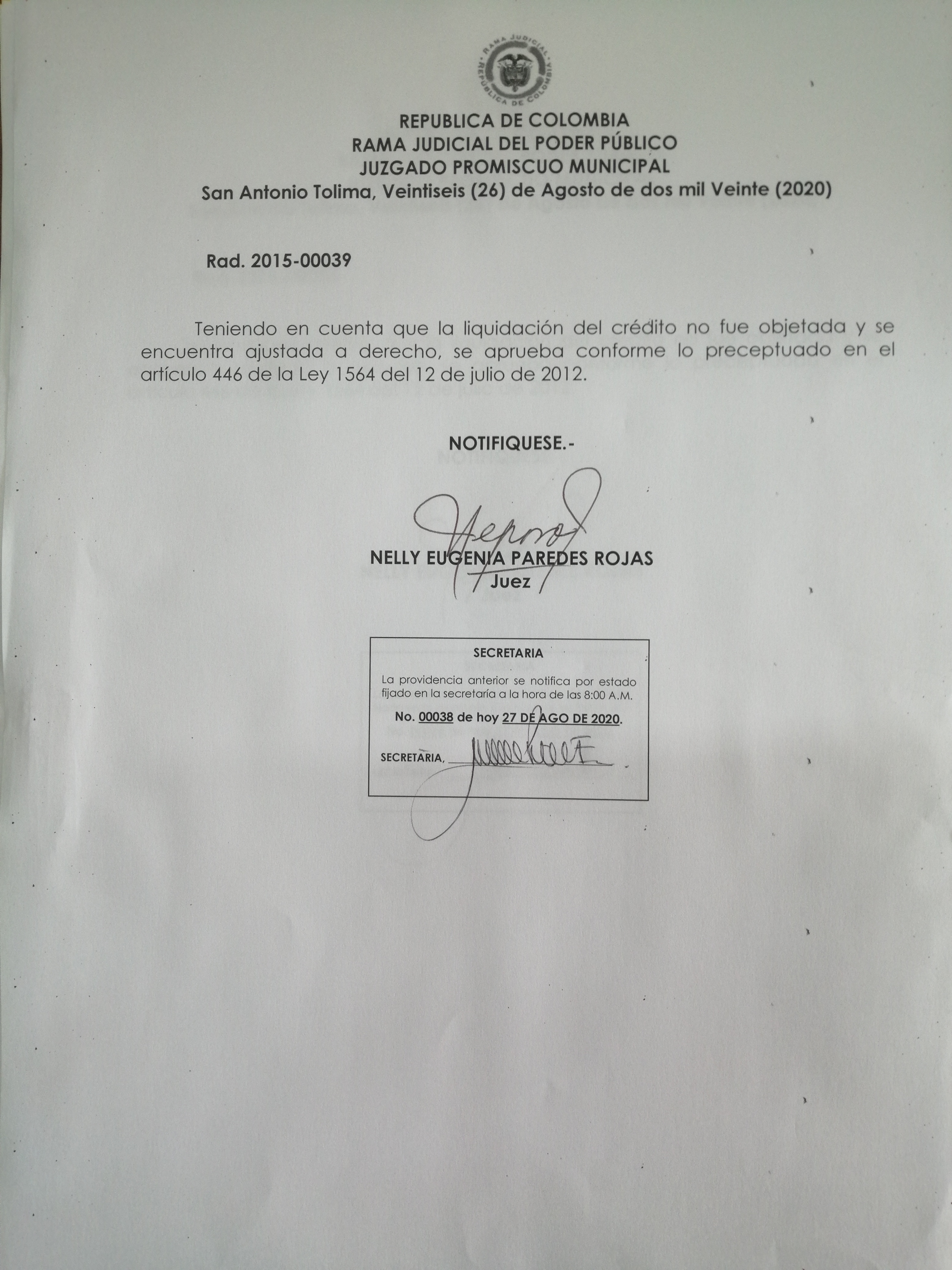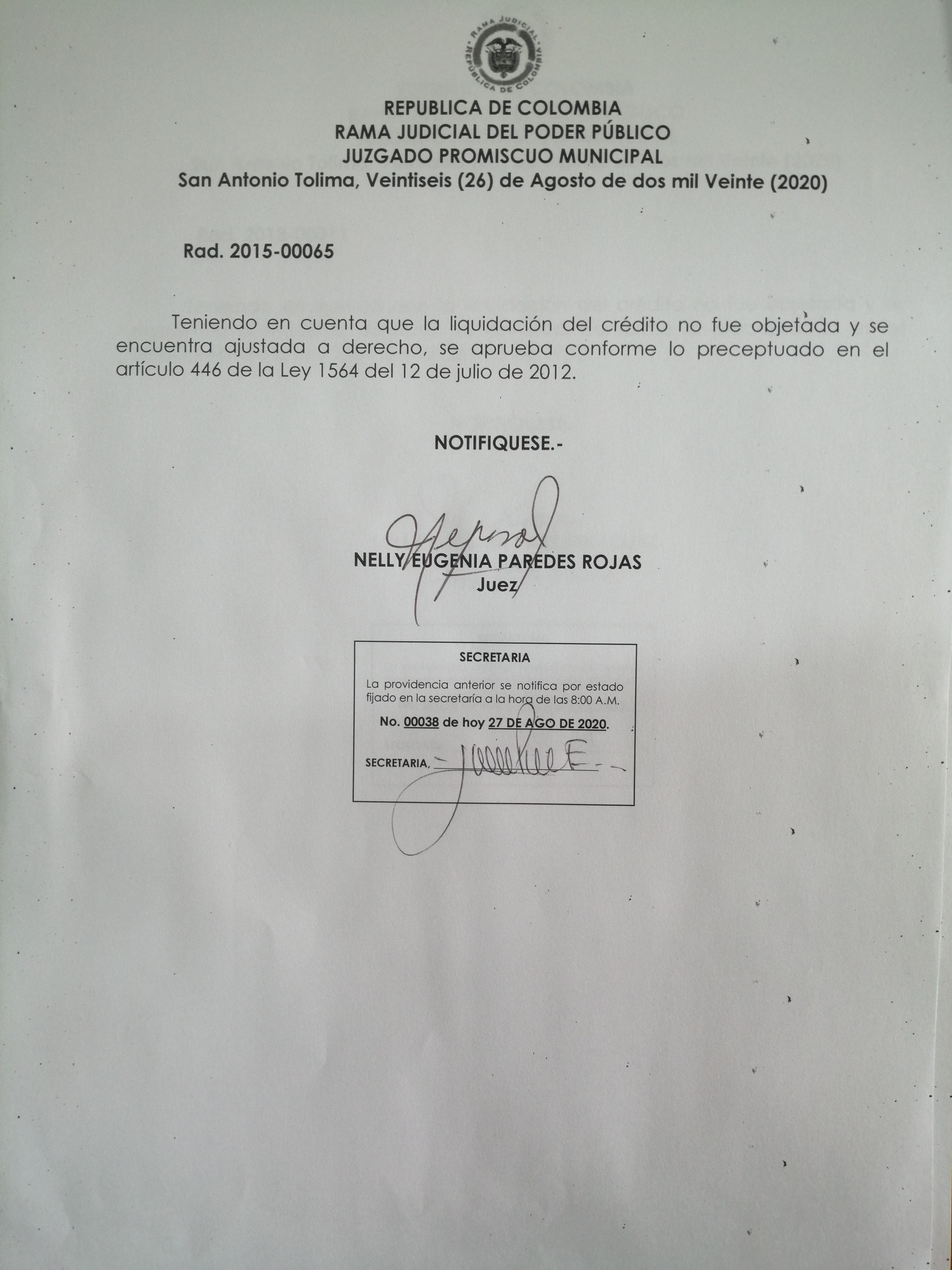 JUZGADO 001 PROMISCUO MUNICIPAL DE SAN ANTONIO - TOLIMA