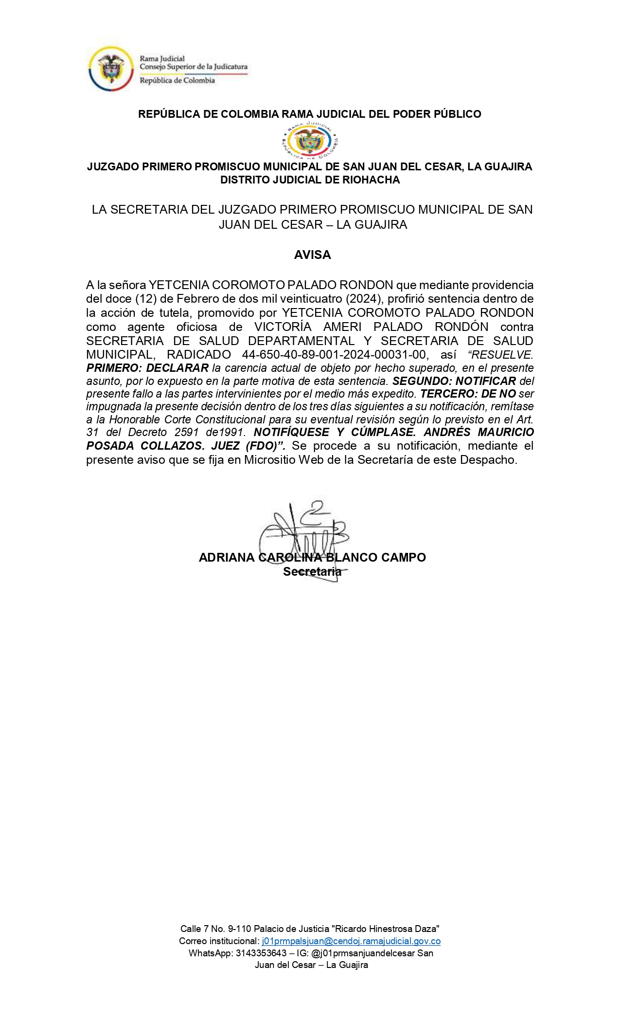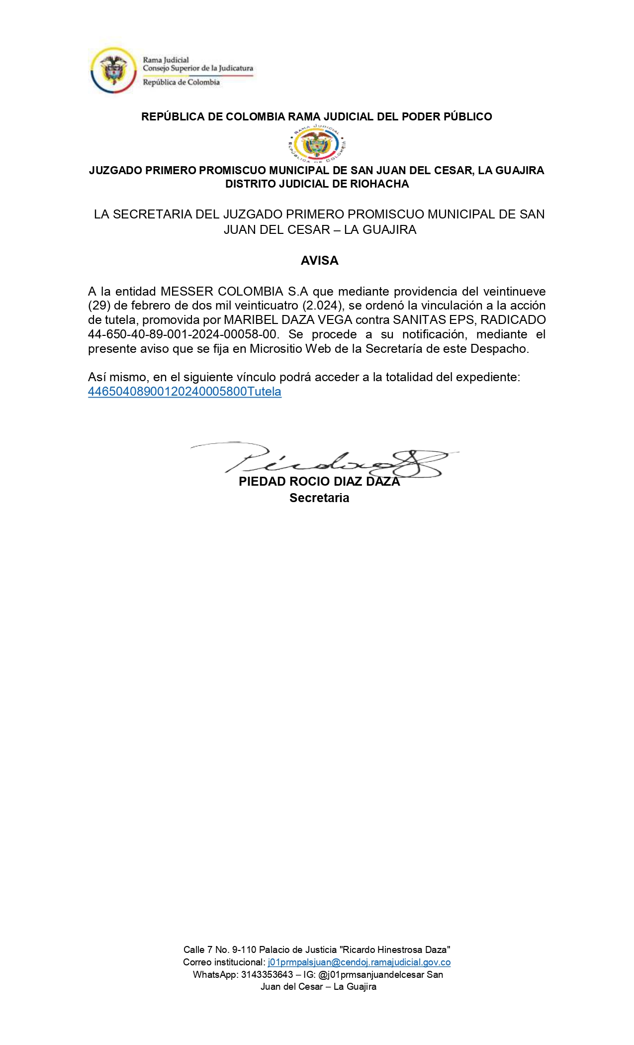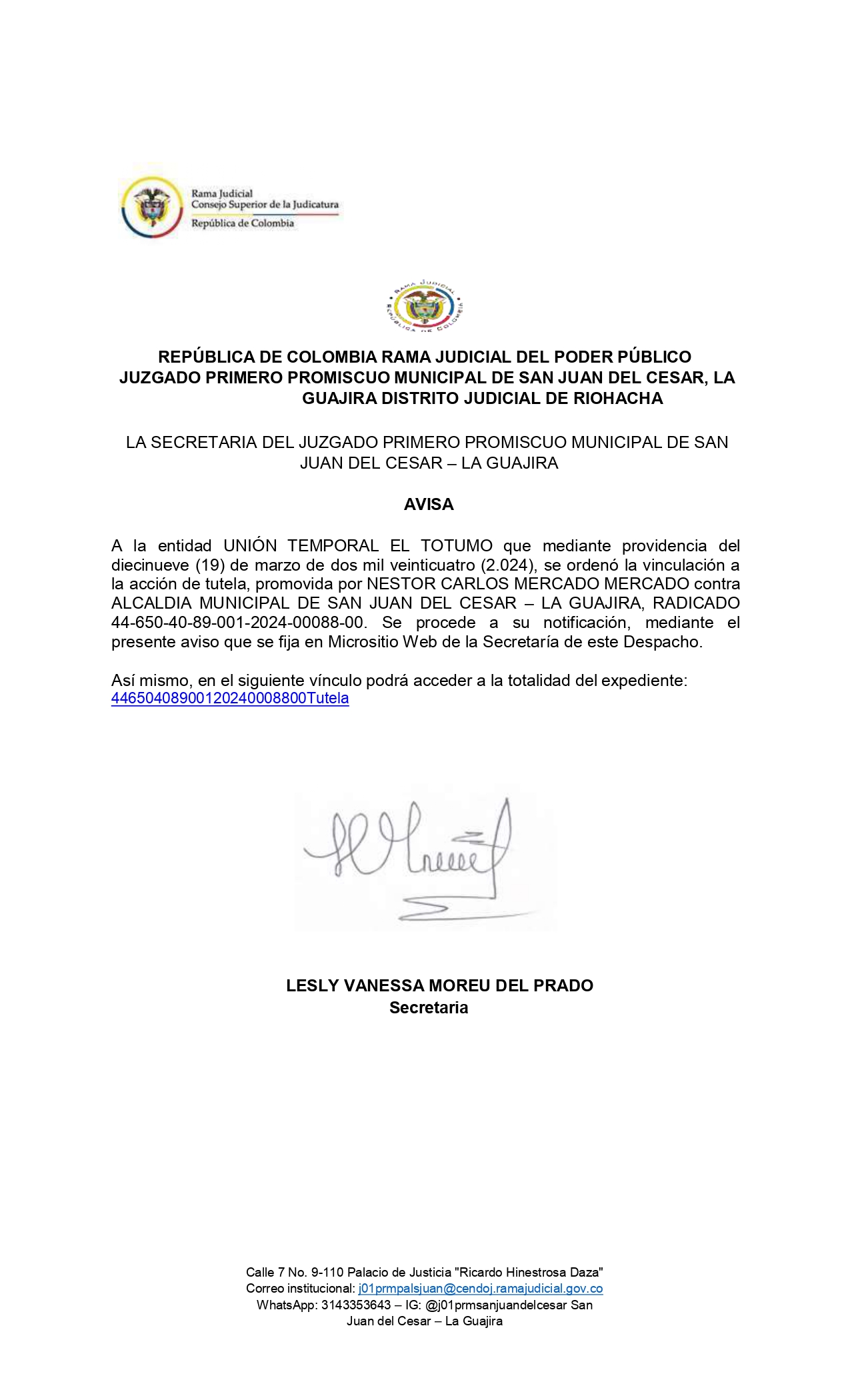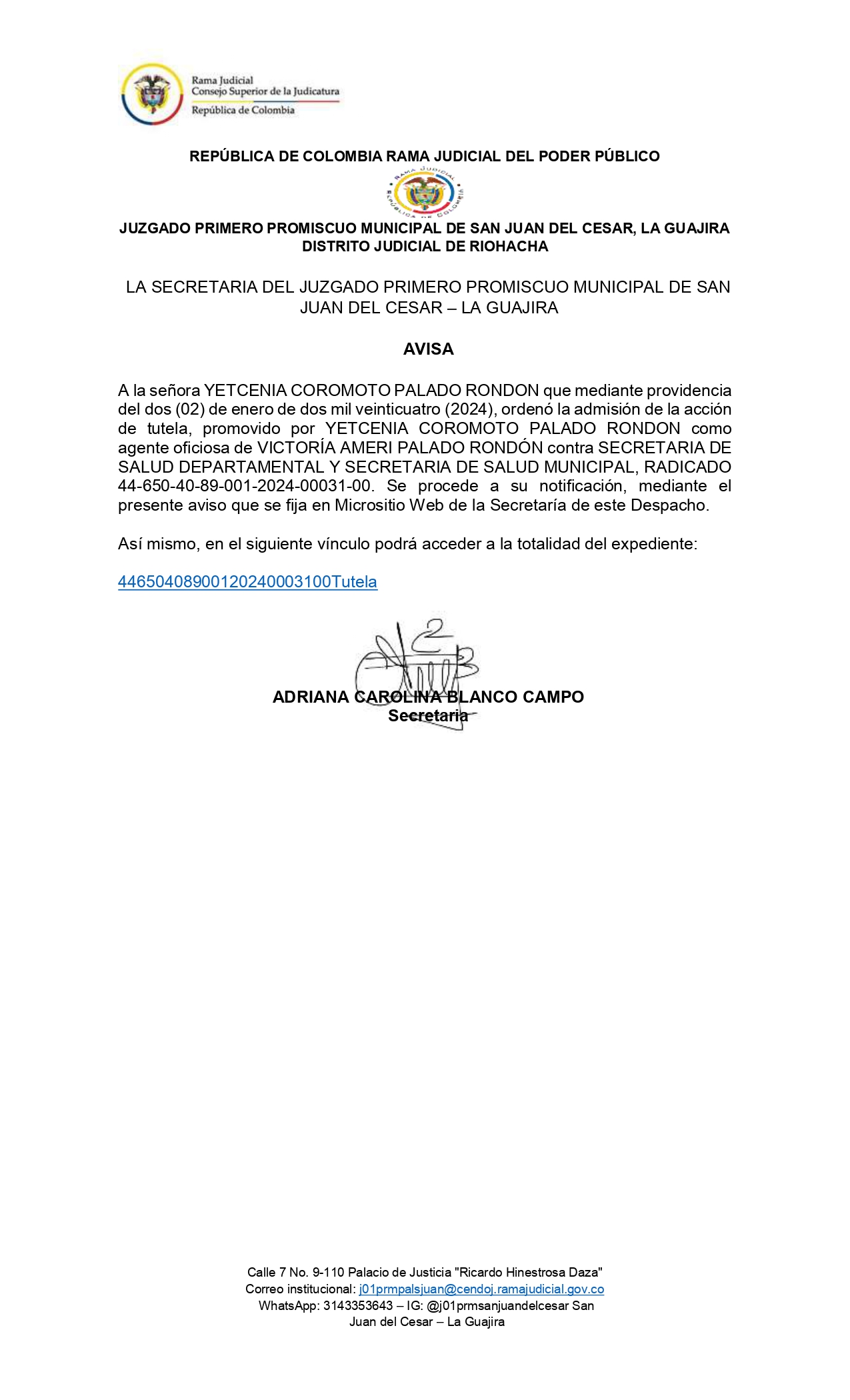 JUZGADO 001 PROMISCUO MUNICIPAL DE SAN JUAN DEL CESAR - LA GUAJIRA