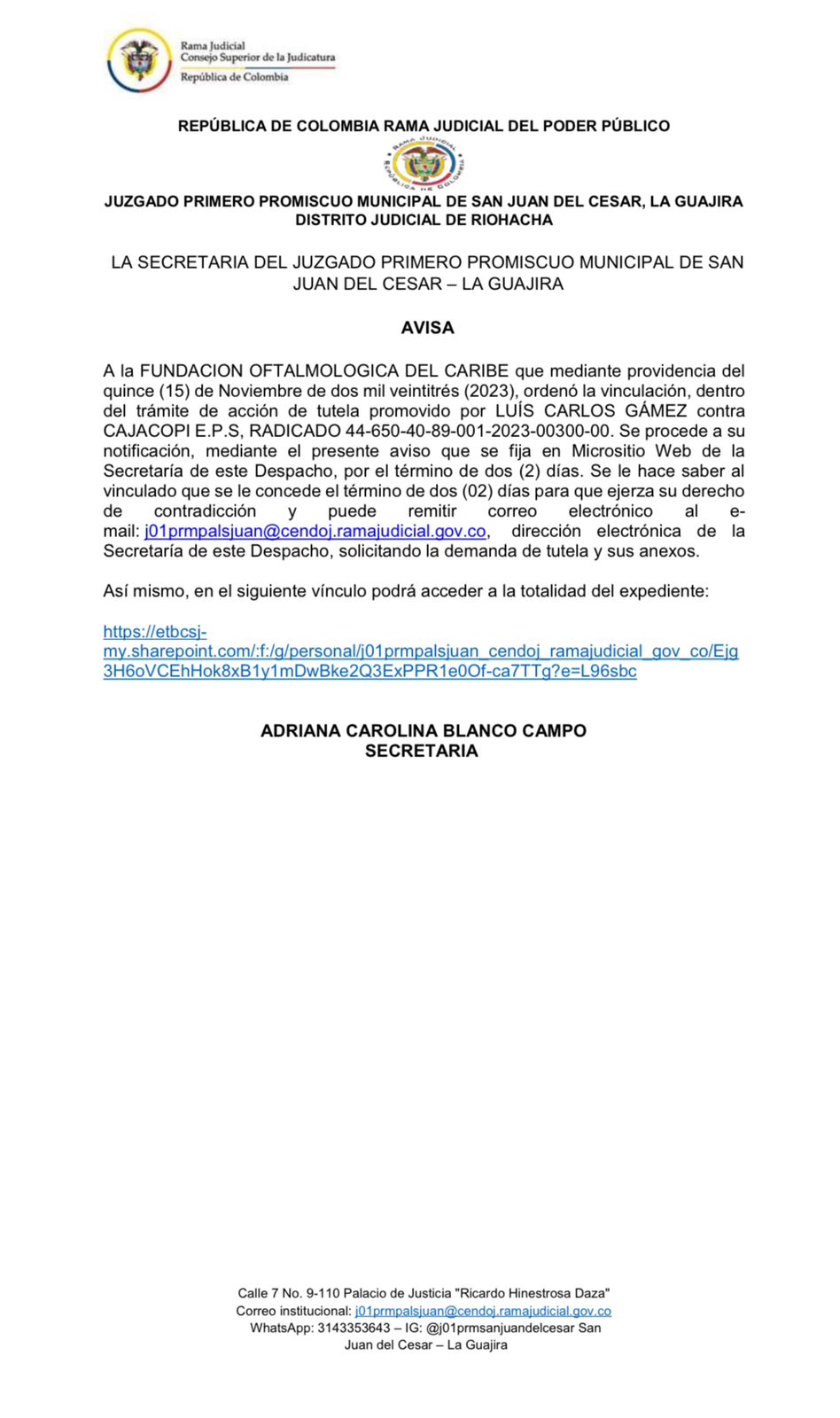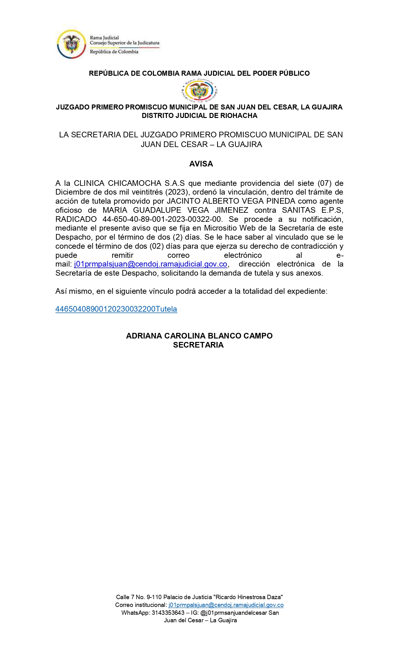 JUZGADO 001 PROMISCUO MUNICIPAL DE SAN JUAN DEL CESAR - LA GUAJIRA