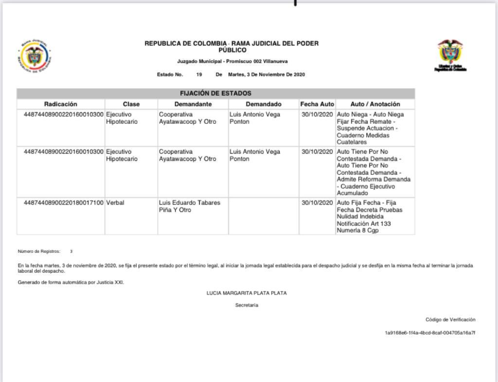 • JUZGADO 002 PROMISCUO MUNICIPAL DE VILLANUEVA - LA GUAJIRA