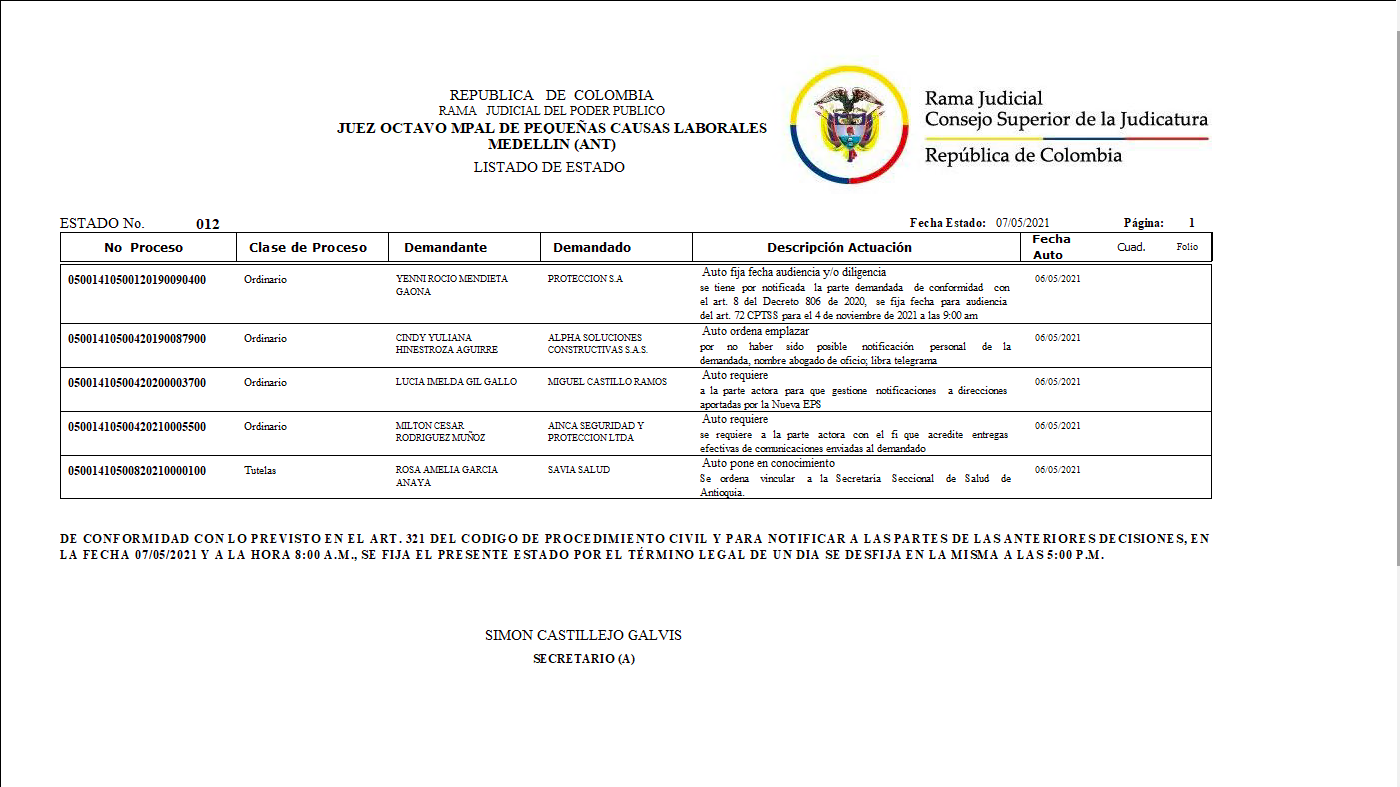 JUZGADO 008 MUNICIPAL DE PEQUEÑAS CAUSAS LABORALES DE MEDELLÍN