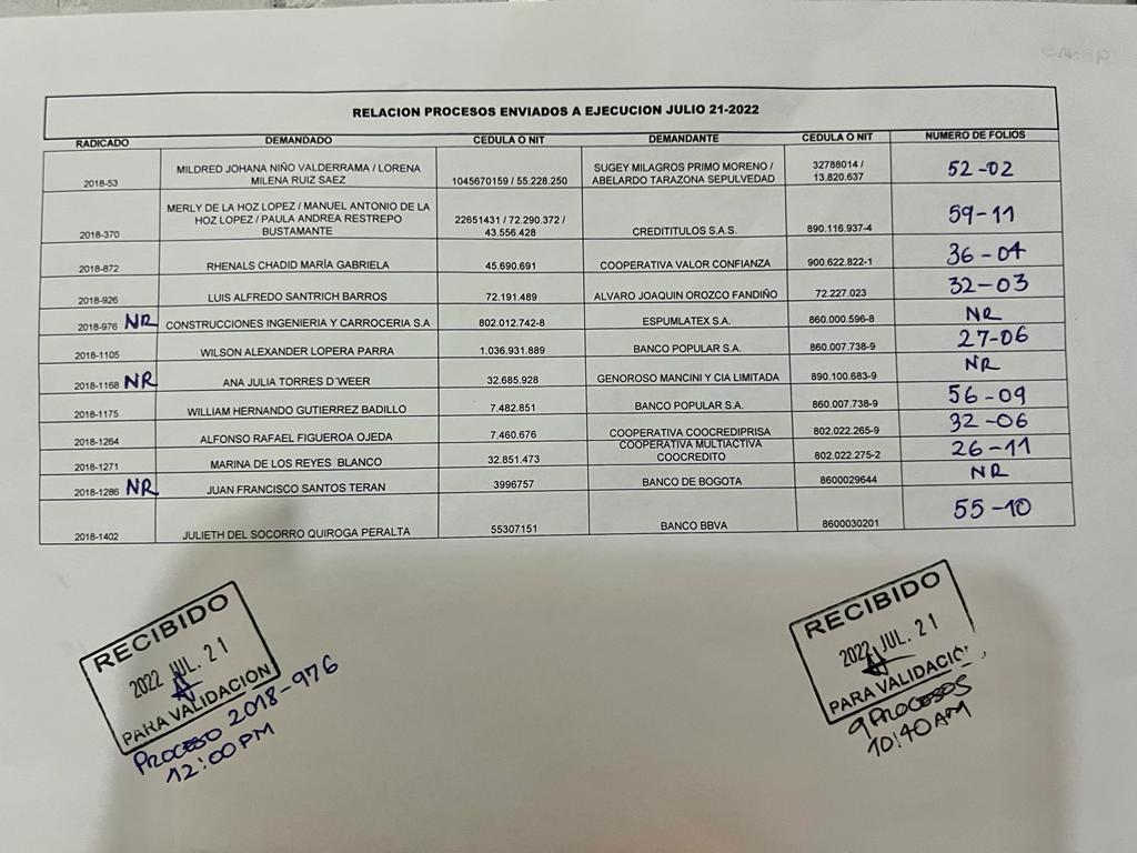 ENVÍO DE PROCESOS AL CENTRO DE SERVICIOS DE LOS JUZGADOS DE EJECUCIÓN CIVIL MUNICIPAL
