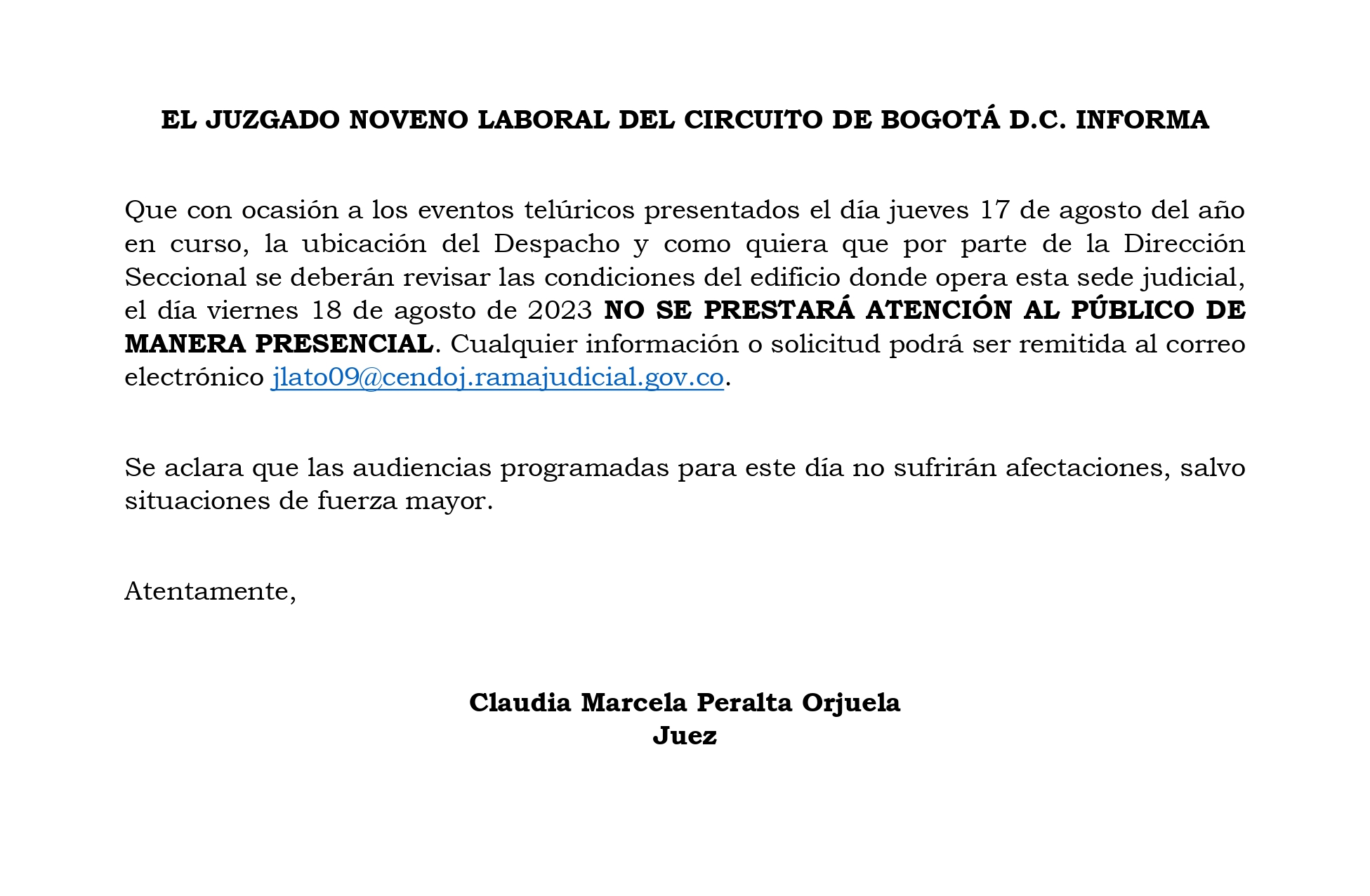 JUZGADO 009 LABORAL DEL CIRCUITO DE BOGOTÁ - BOGOTÁ