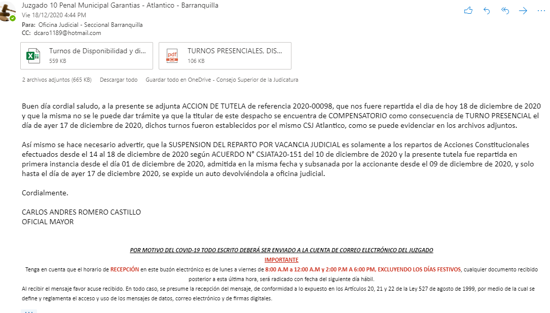 JUZGADO 010 PENAL MUNICIPAL CON FUNCIÓN DE CONTROL DE GARANTÍAS DE BARRANQUILLA