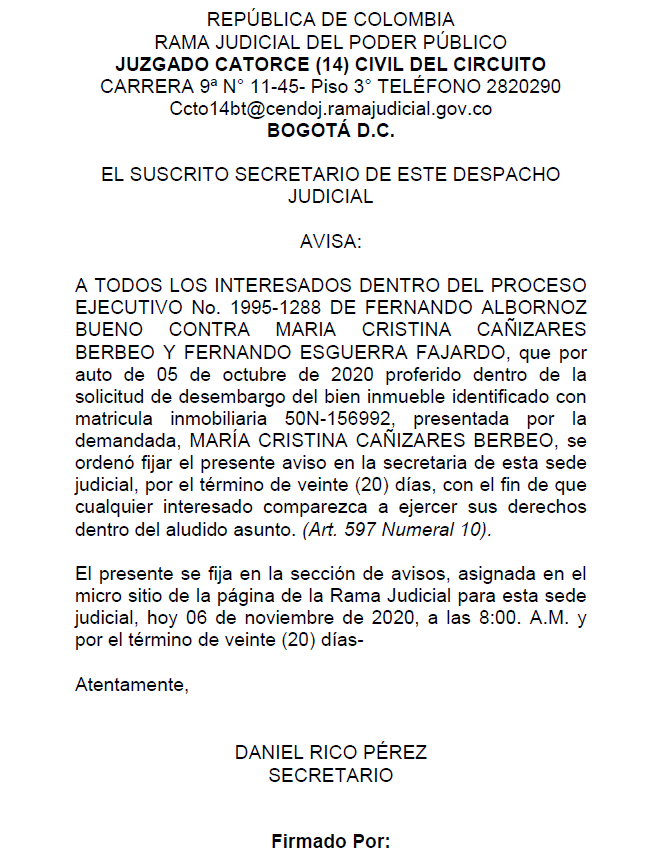 CITAS JUZGADO 14 CIVIL DEL CIRCUITO