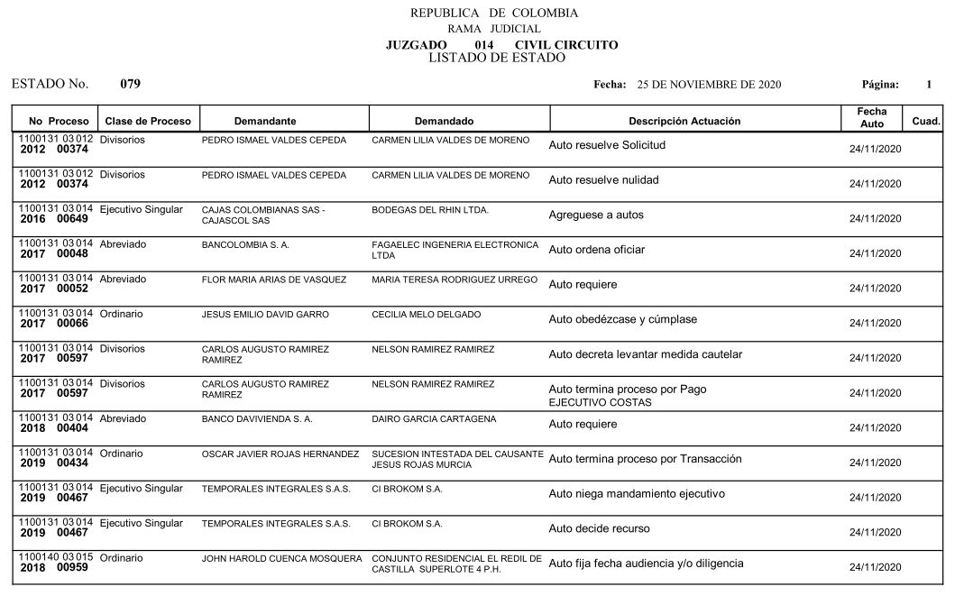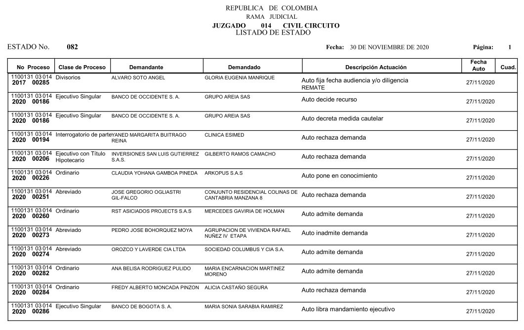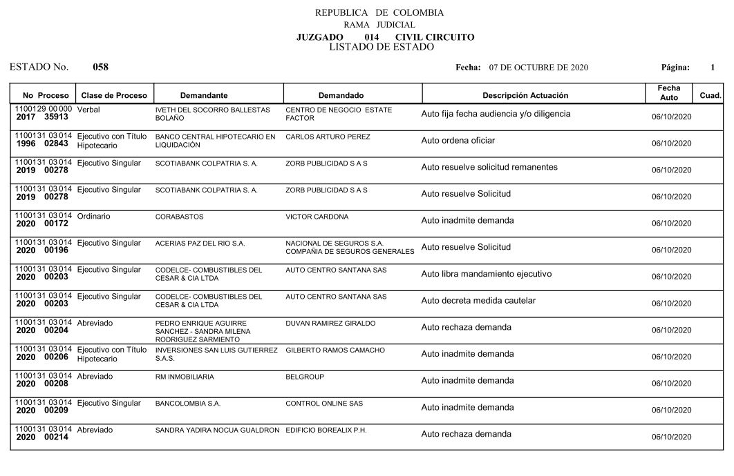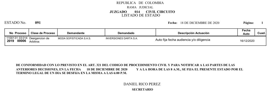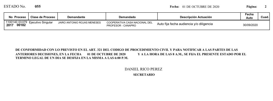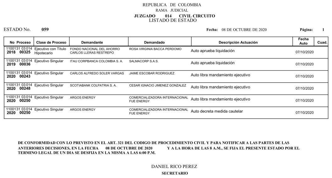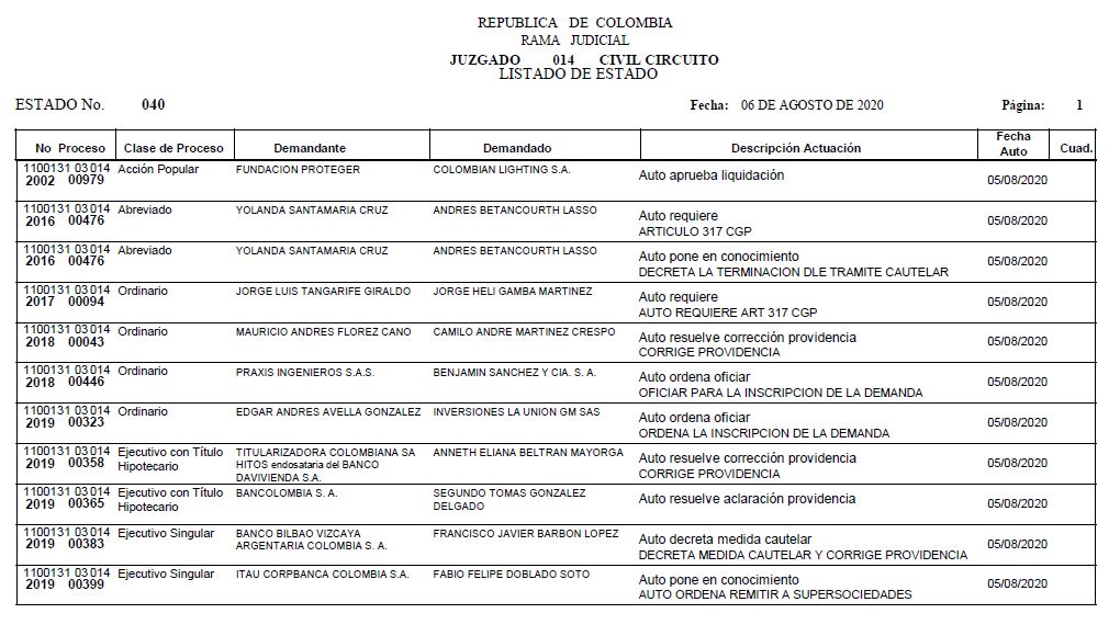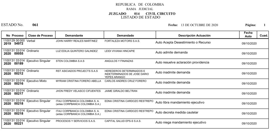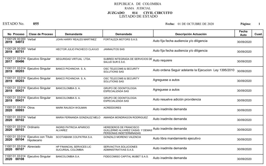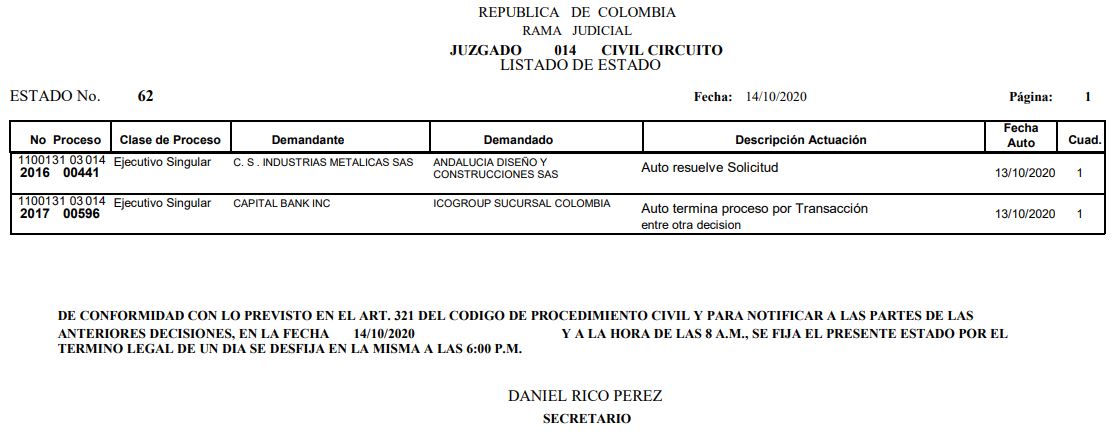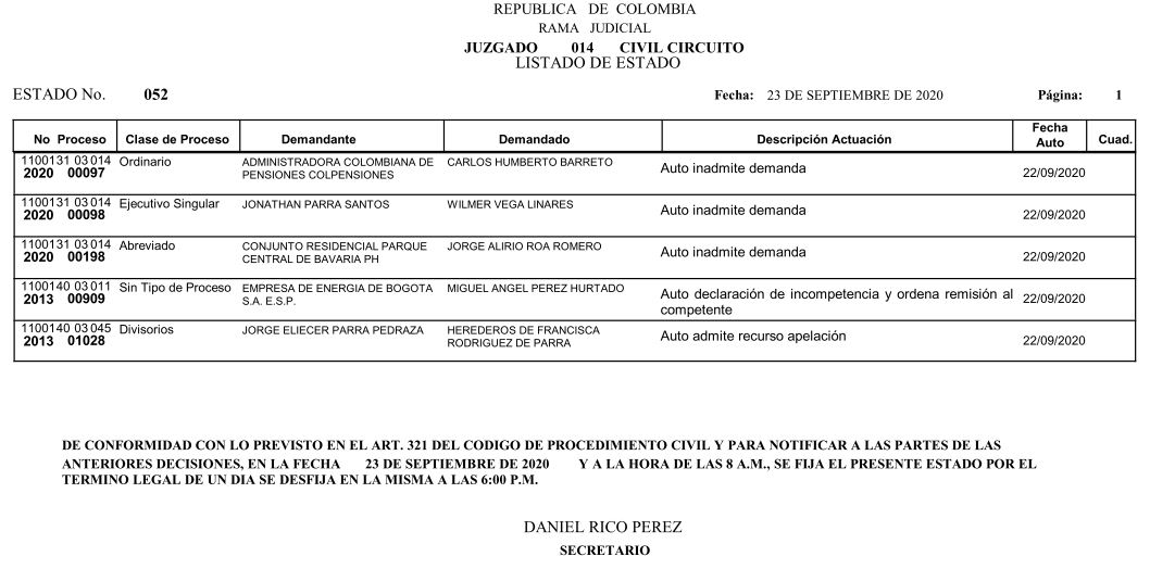 Se comunica a los señores abogados y público en general, que debido a inconvenientes en el sistema, el estado No. 090 de fecha 16 de diciembre de 2020, se correrán términos a partir del 18 de diciembre del 2020 a las 8 a m.