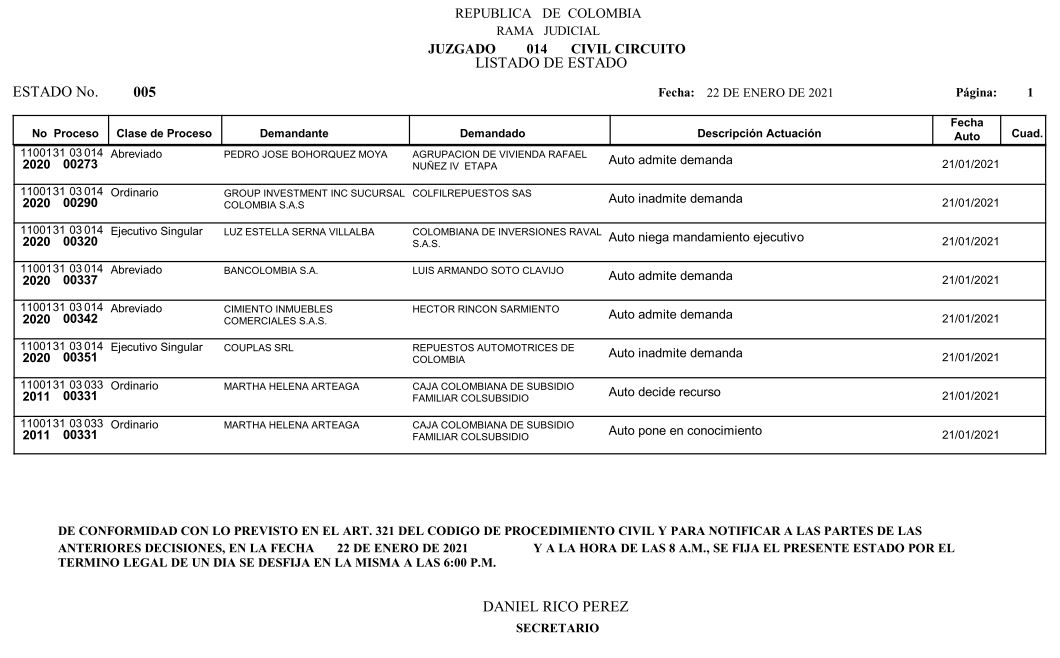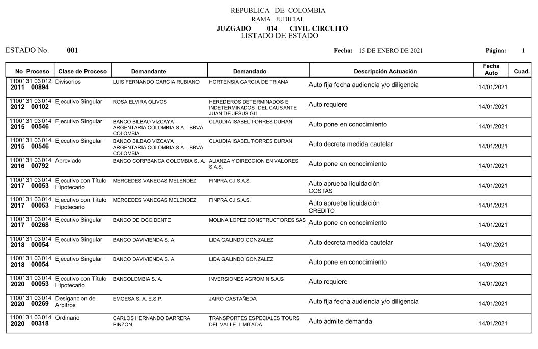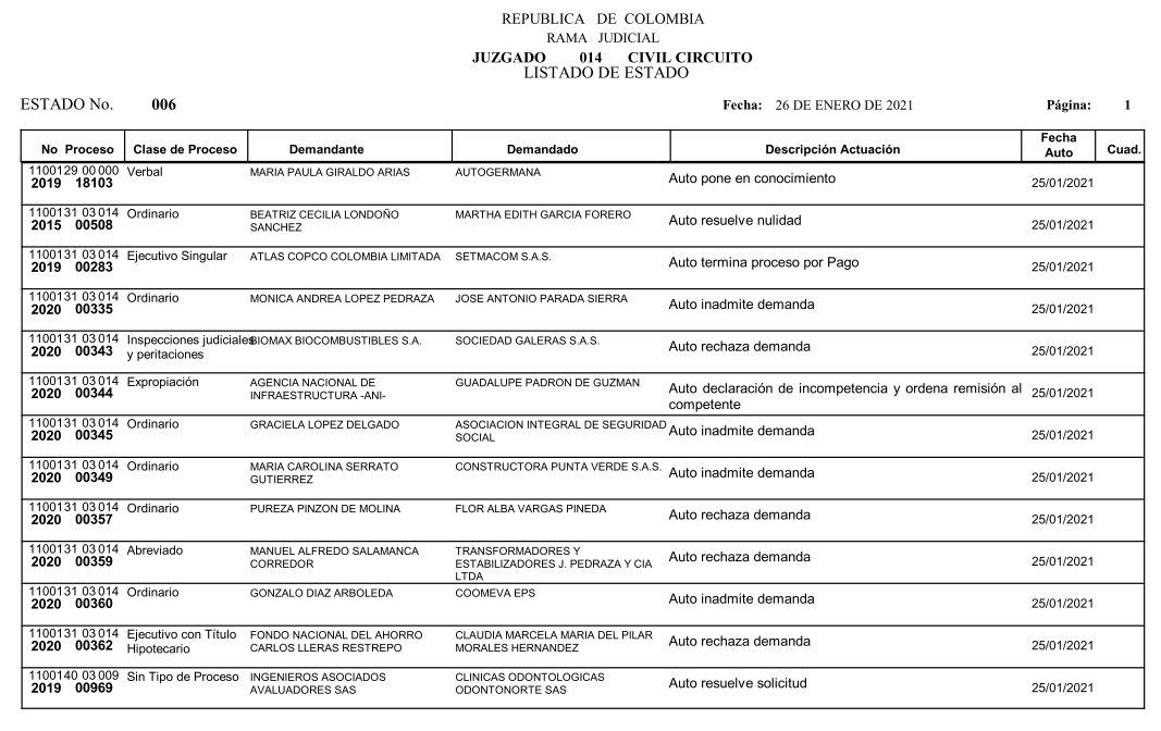 Lista de procesos Art. 124