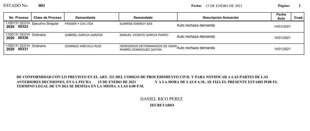 Procesos al Despacho para Sentencia