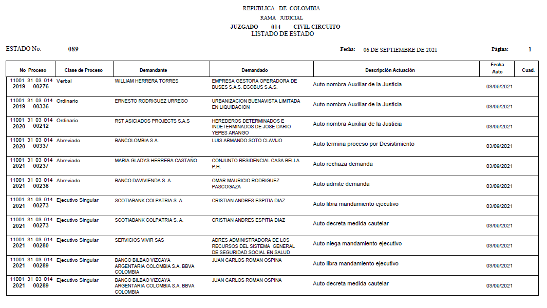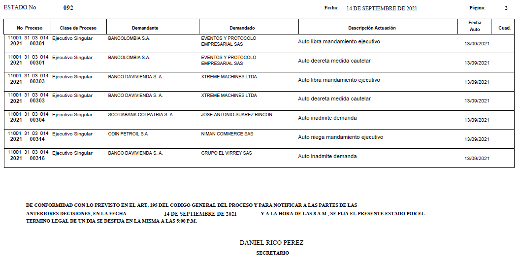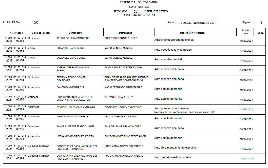 - ESTADO 092 DEL 14 DE SEPTIEMBRE DE 2021