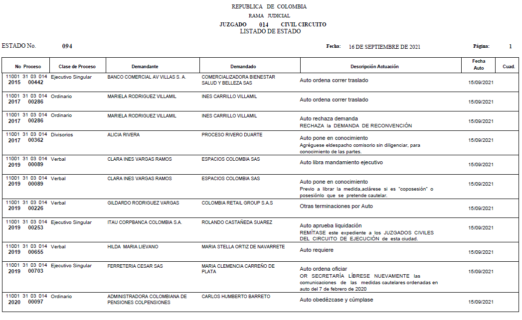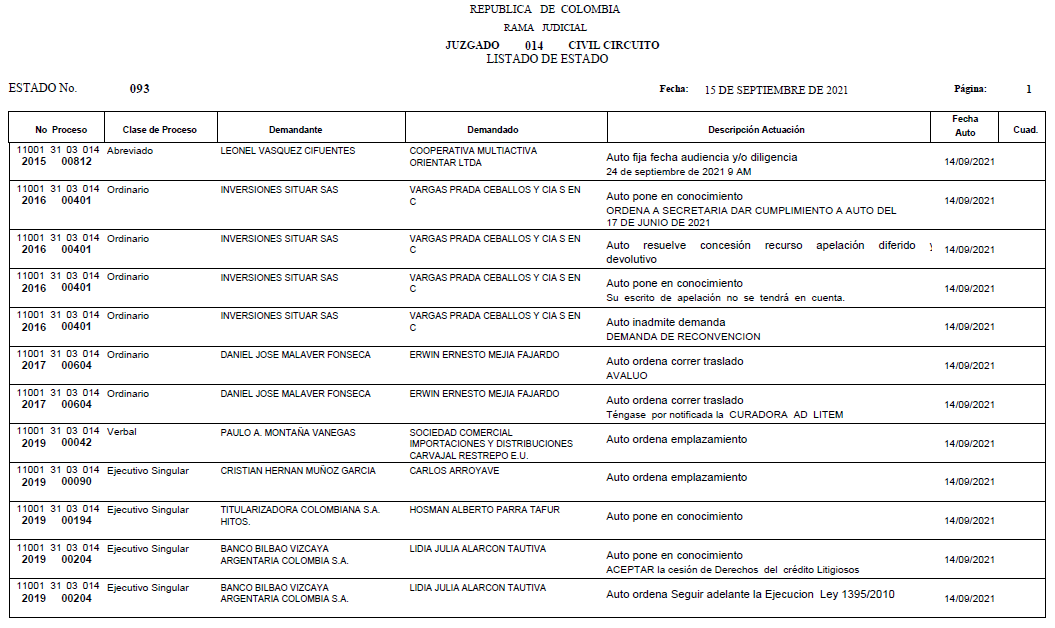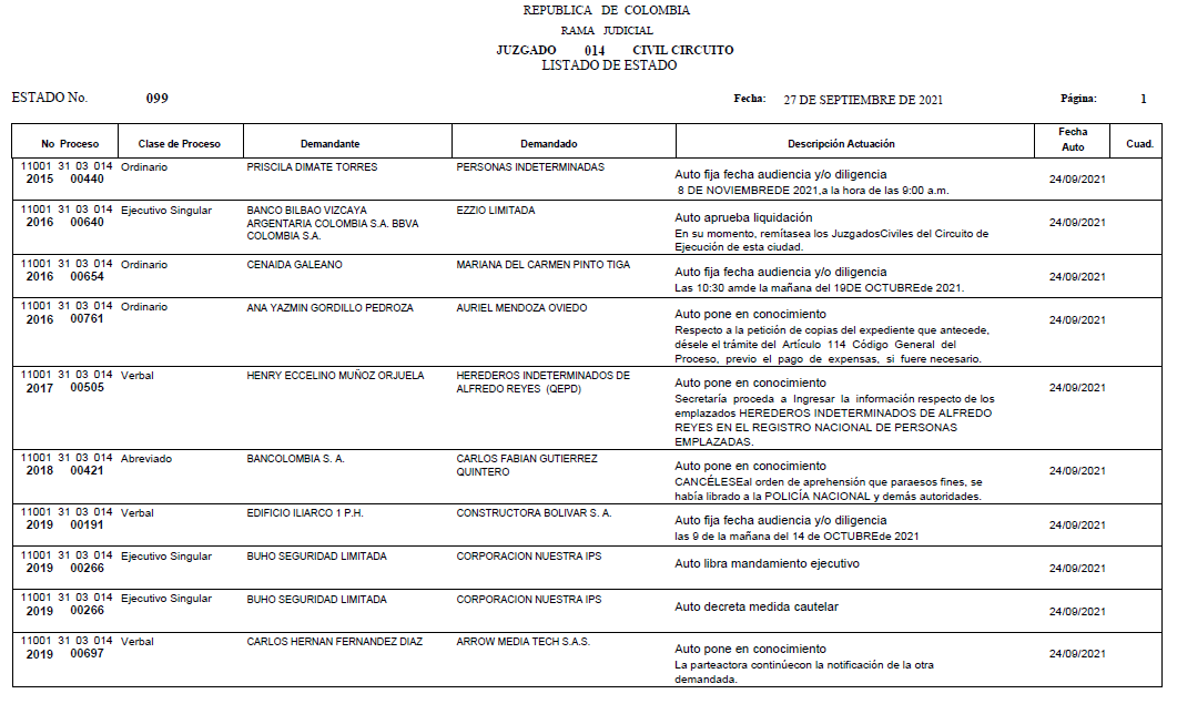- ESTADO 093 DEL 15 DE SEPTIEMBRE DE 2021