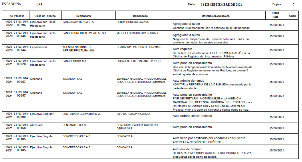 - ESTADO 094 DEL 16 DE SEPTIEMBRE DE 2021