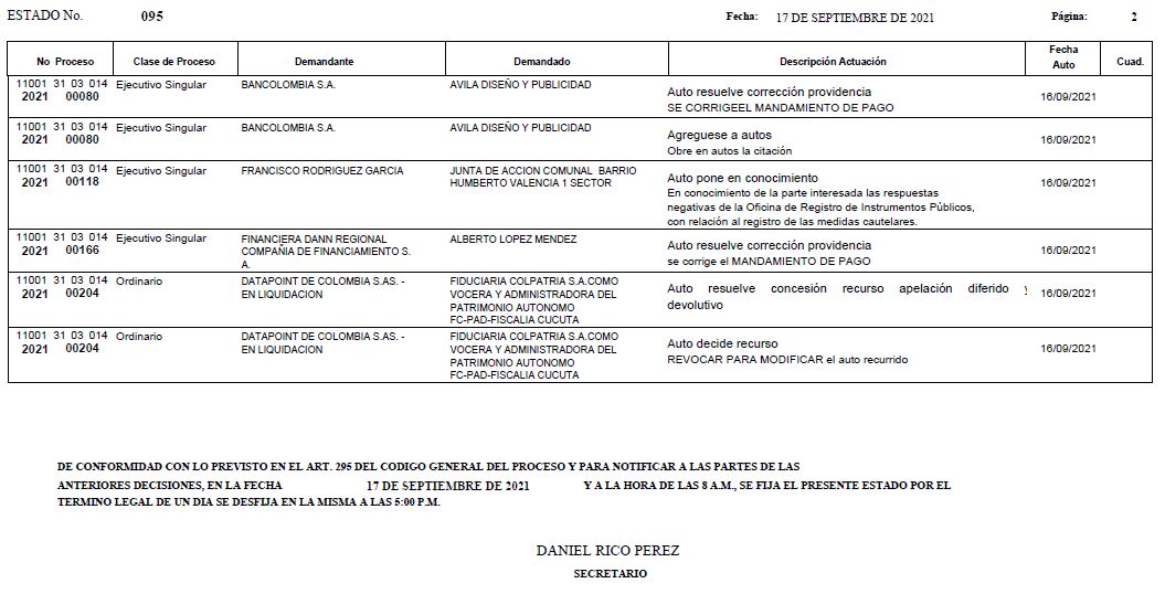 - ESTADO 095 DEL 17 DE SEPTIEMBRE DE 2021