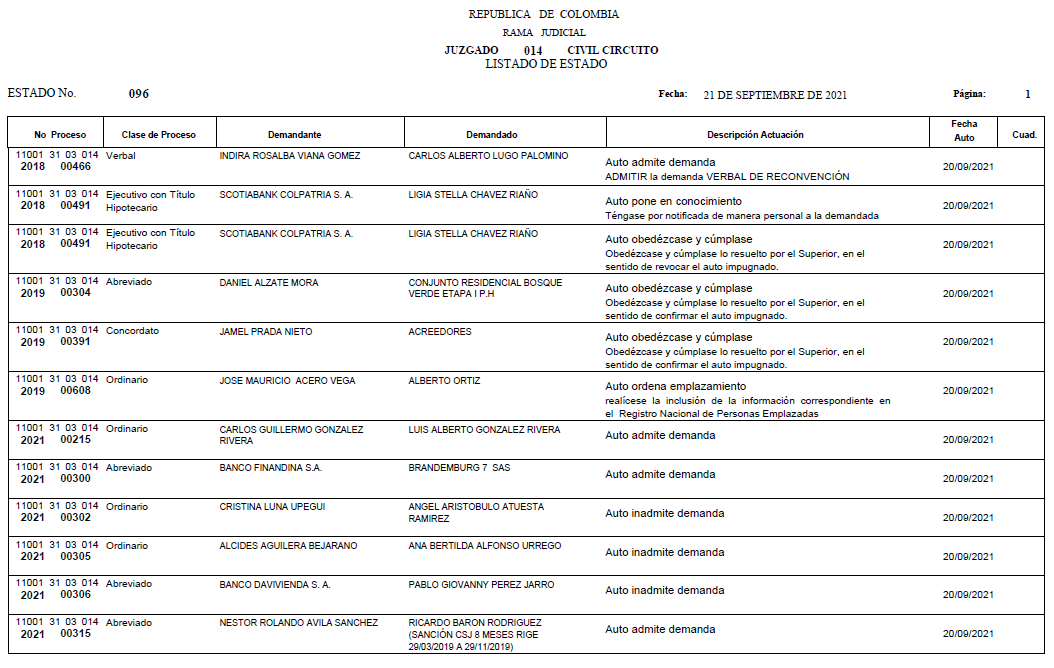 - ESTADO 096 DEL 21 DE SEPTIEMBRE DE 2021