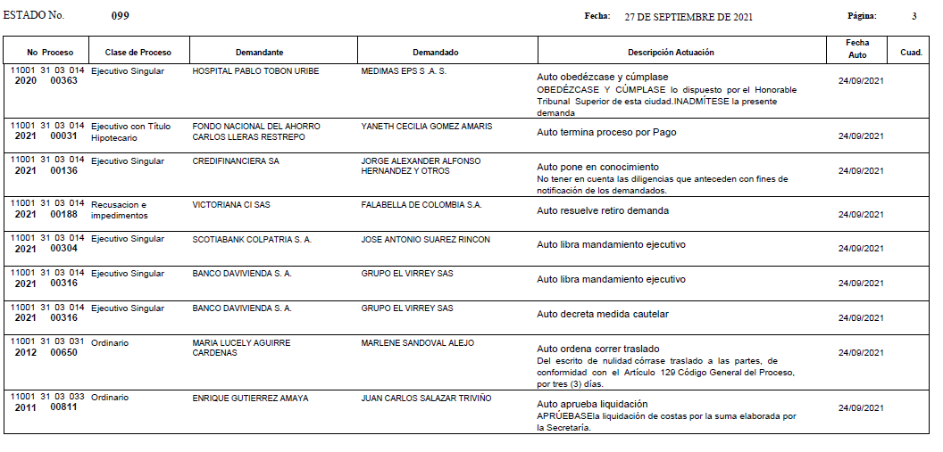 - ESTADO 099 DEL 27 DE SEPTIEMBRE DE 2021