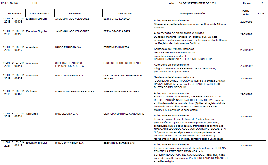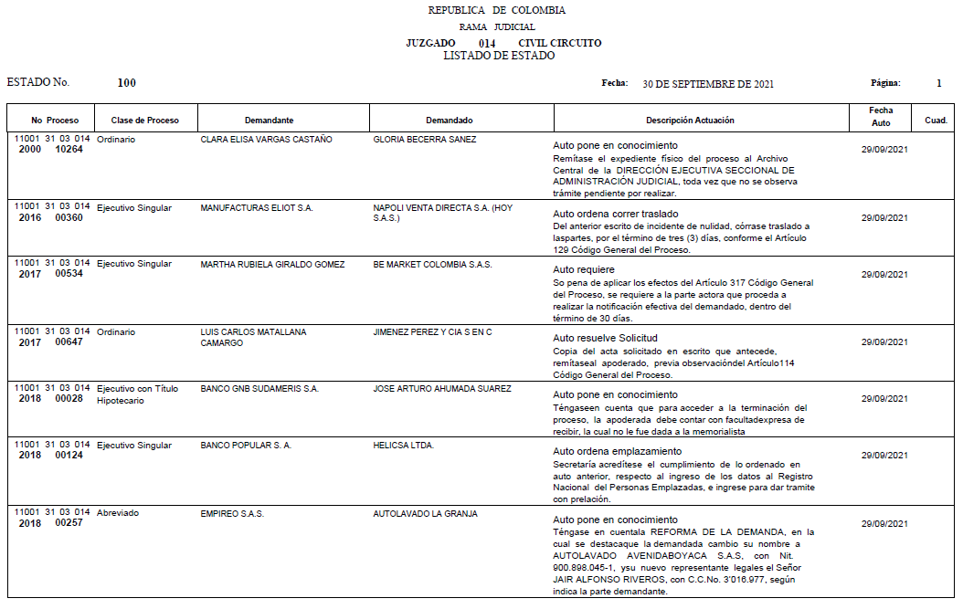 - ESTADO 100 DEL 30 DE SEPTIEMBRE DE 2021