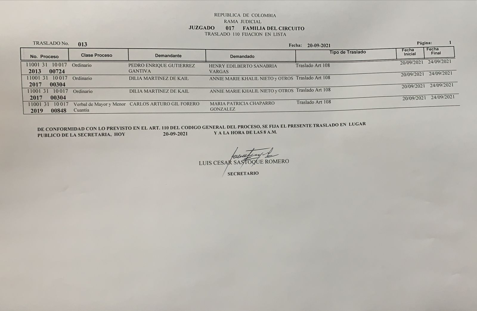 | 23-06-2021 | TRASLADO 110 C.G.P. |