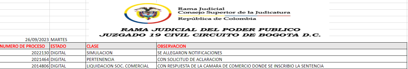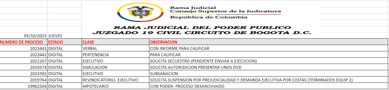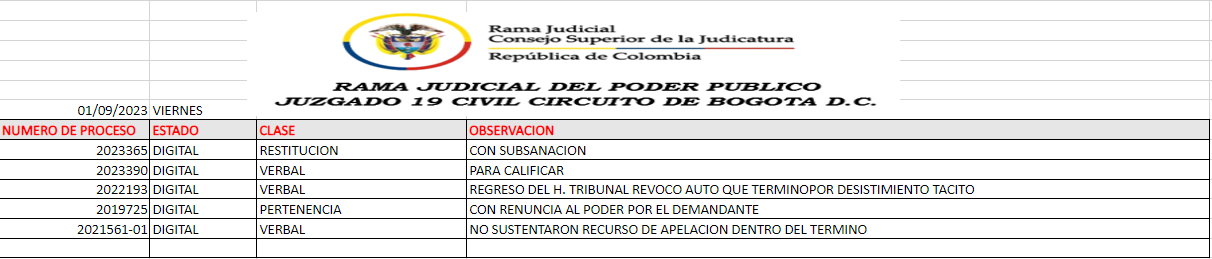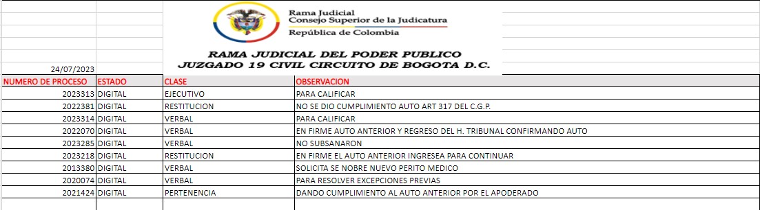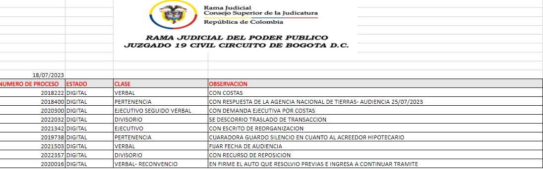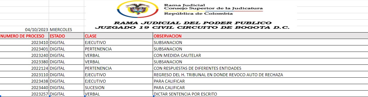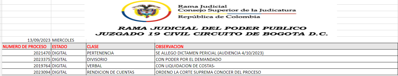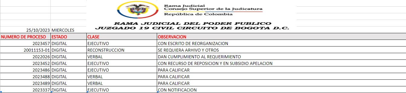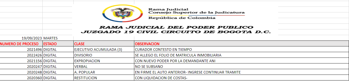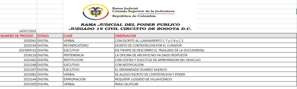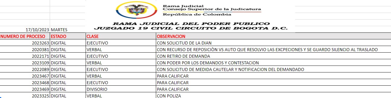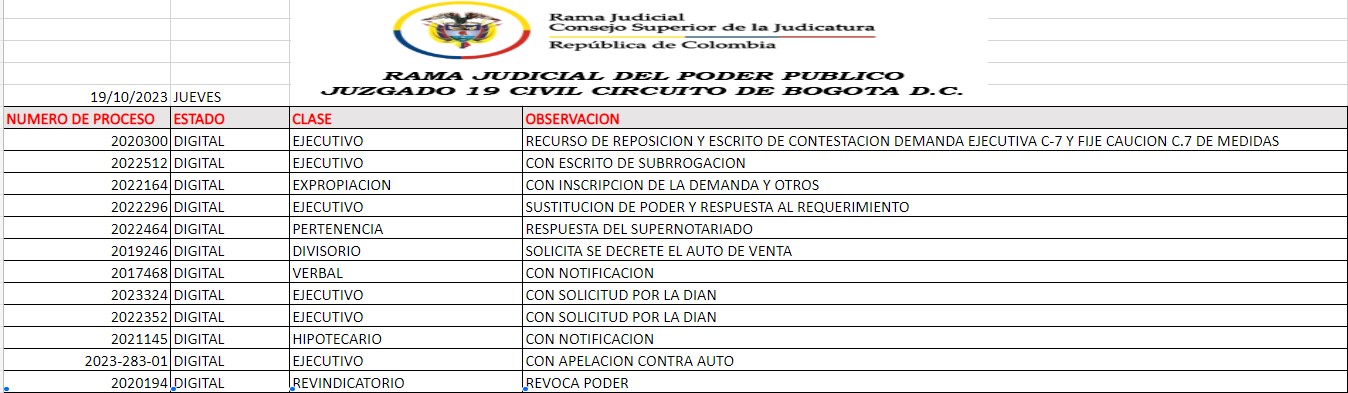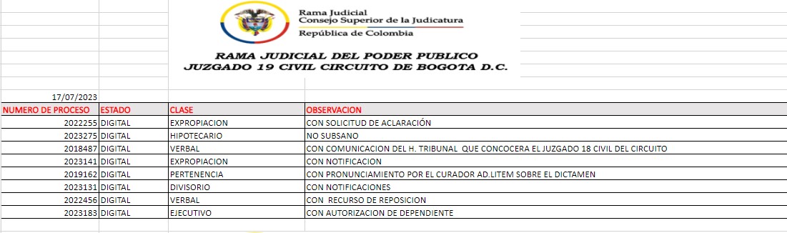 JUZGADO 019 CIVIL DEL CIRCUITO DE BOGOTÁ