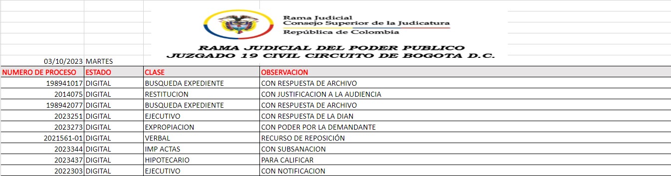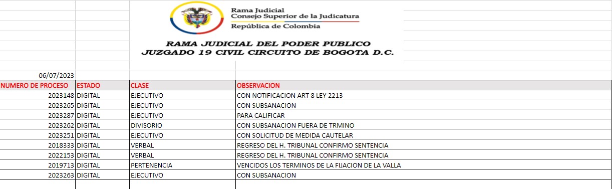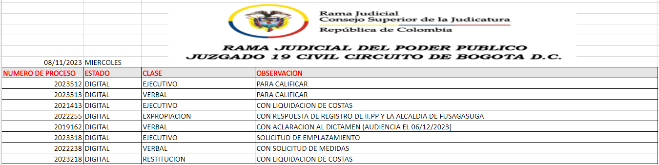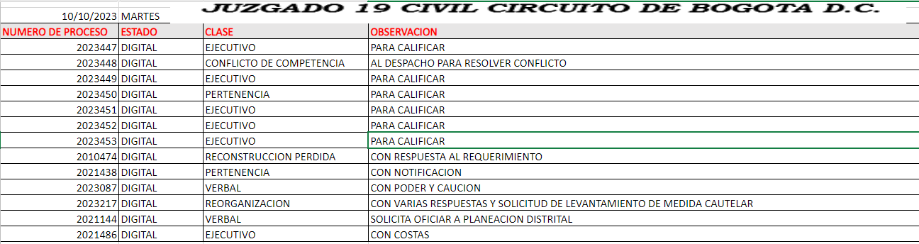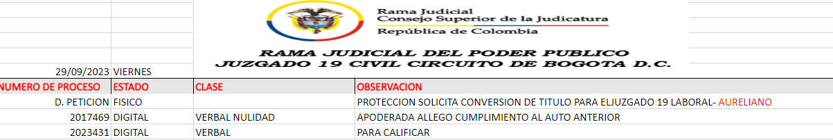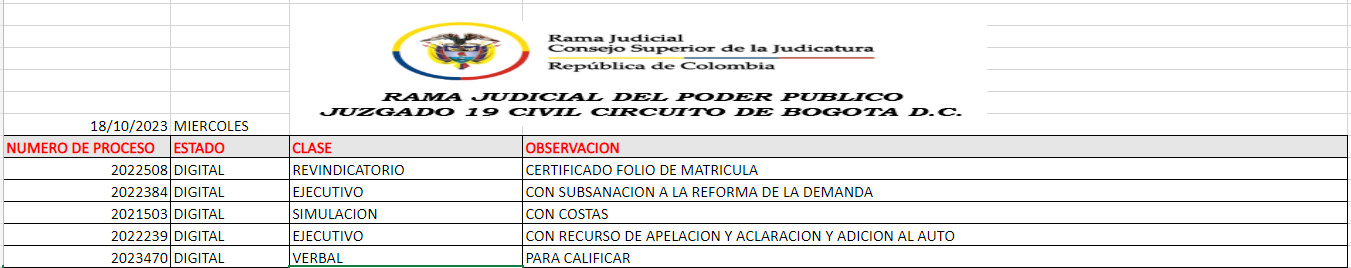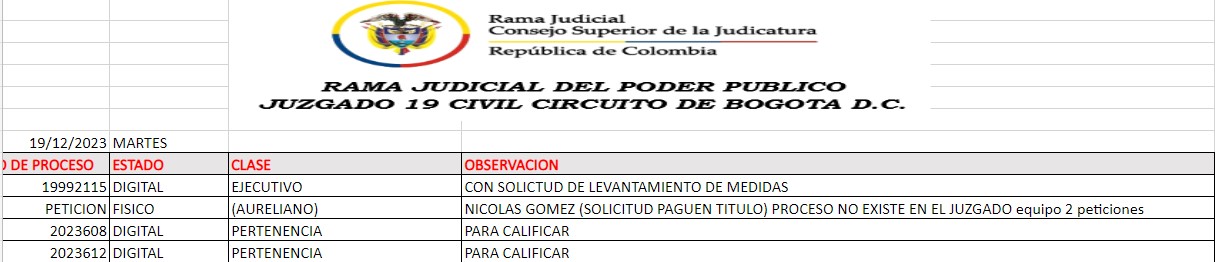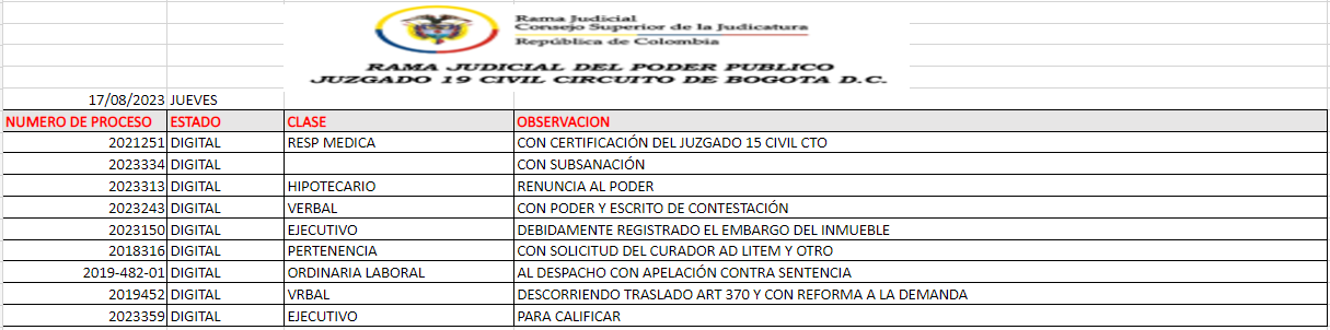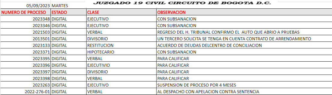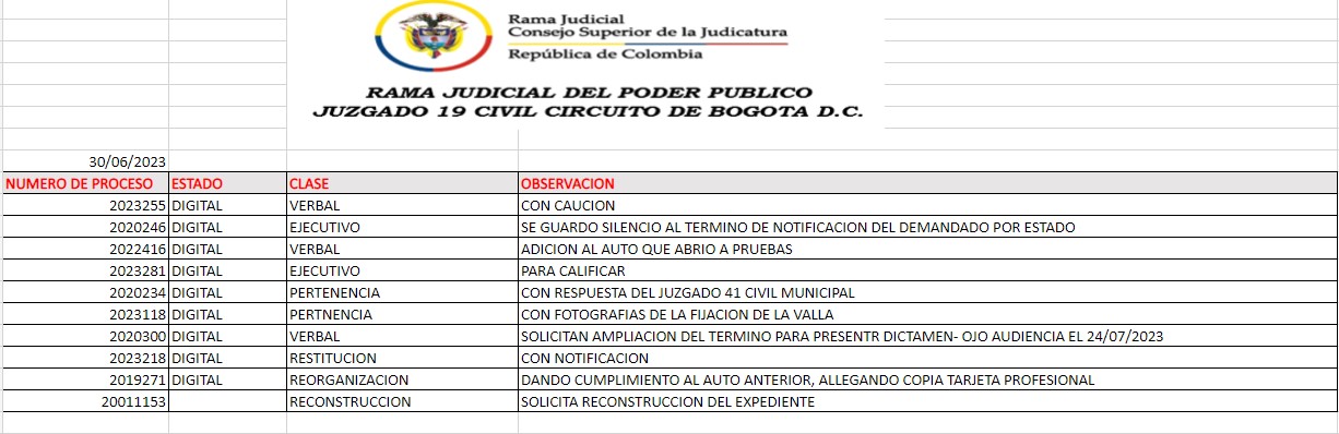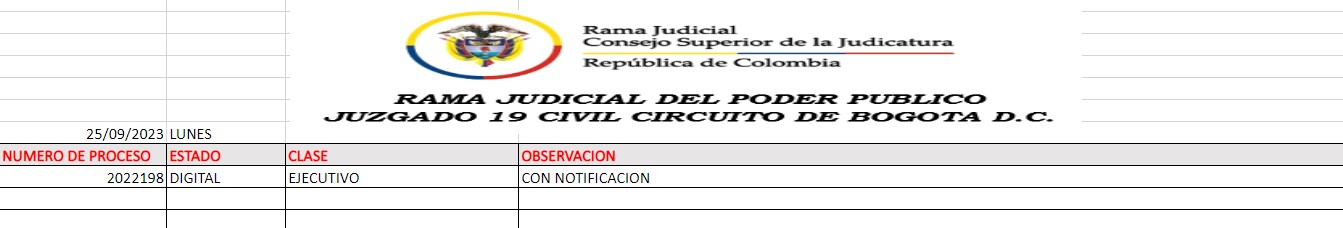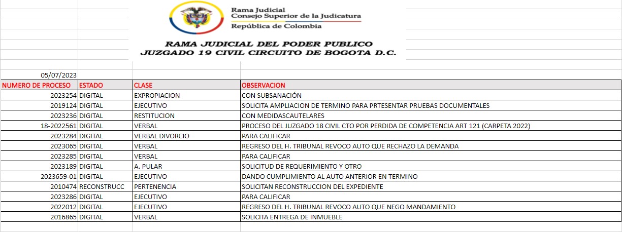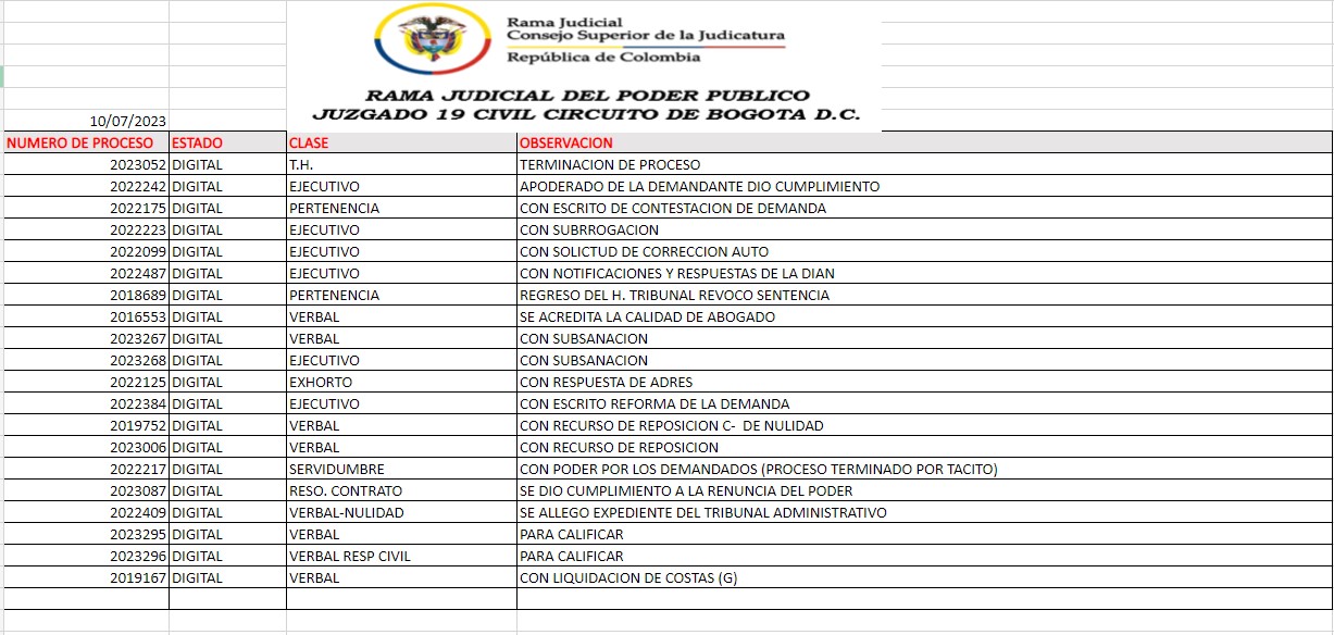 JUZGADO 019 CIVIL DEL CIRCUITO DE BOGOTÁ