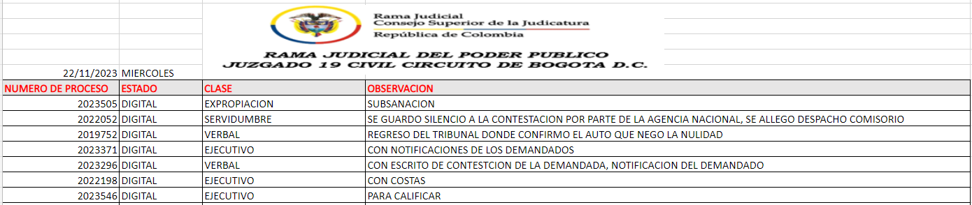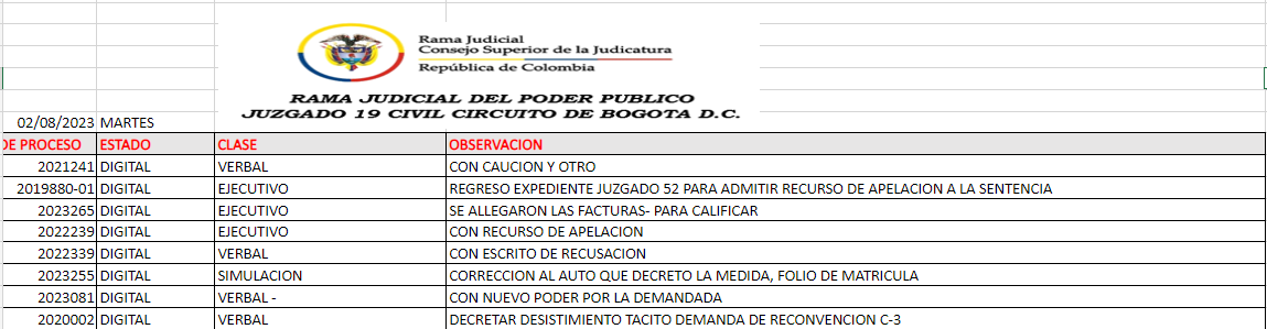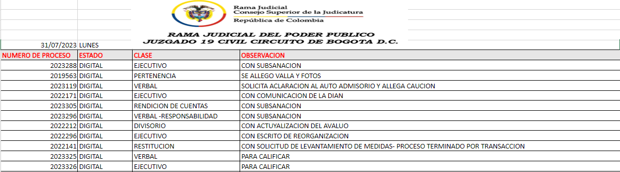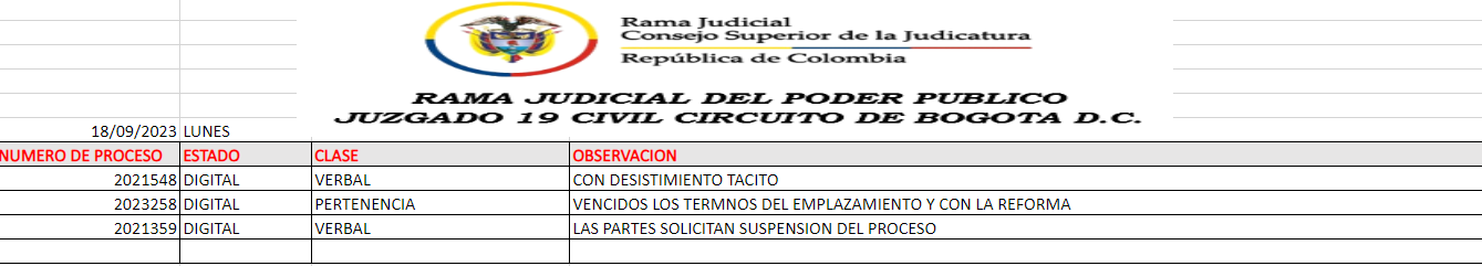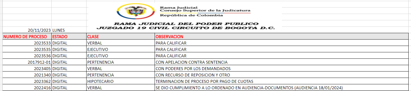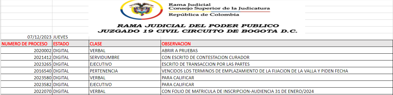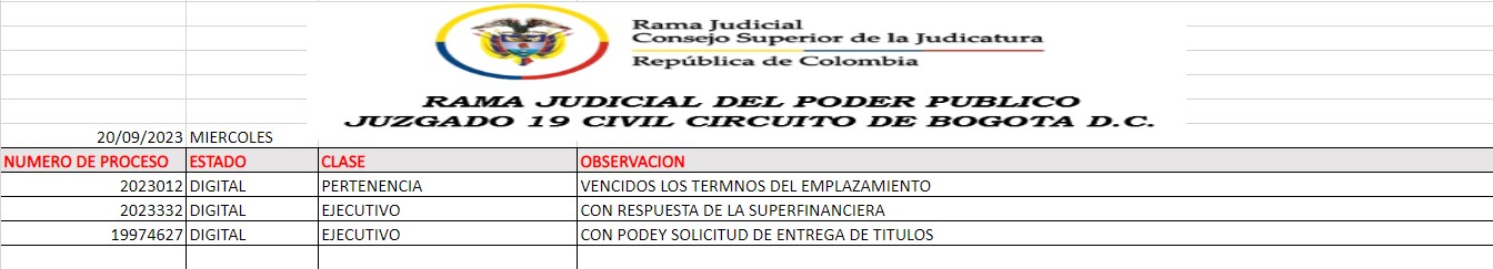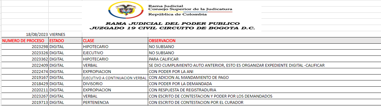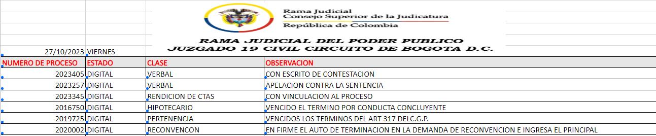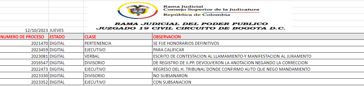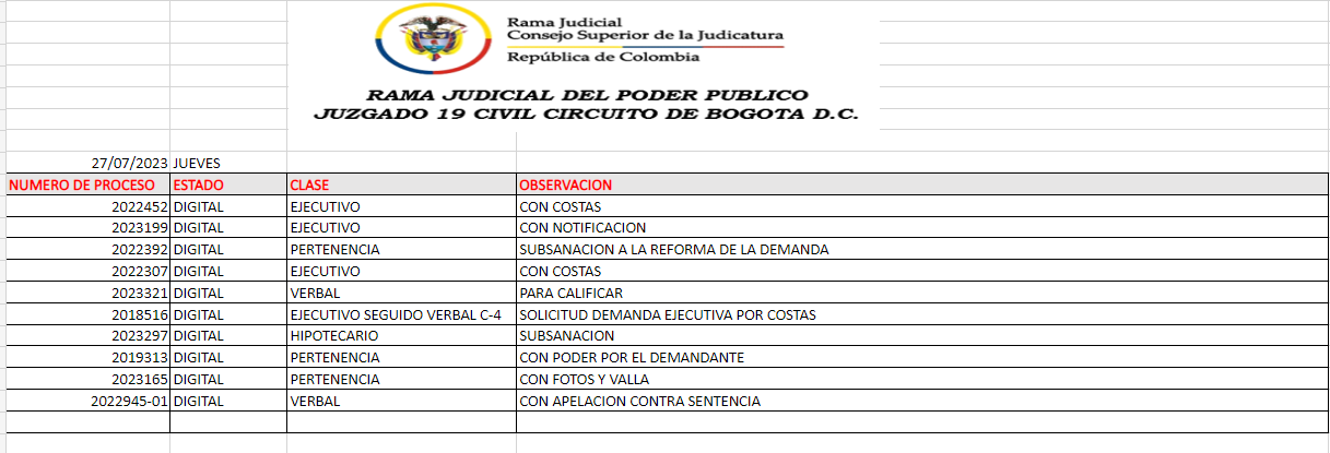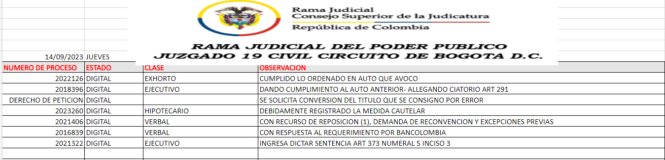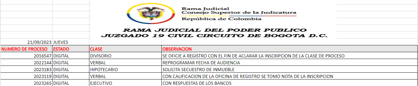 JUZGADO 019 CIVIL DEL CIRCUITO DE BOGOTÁ