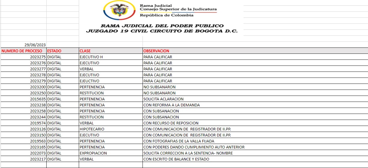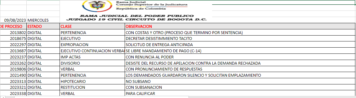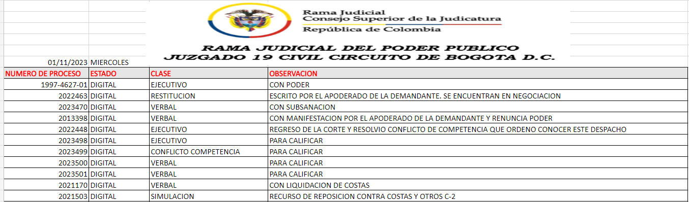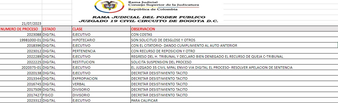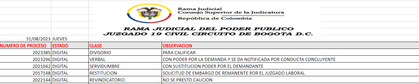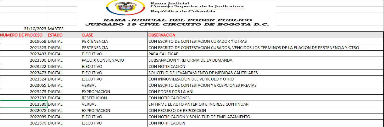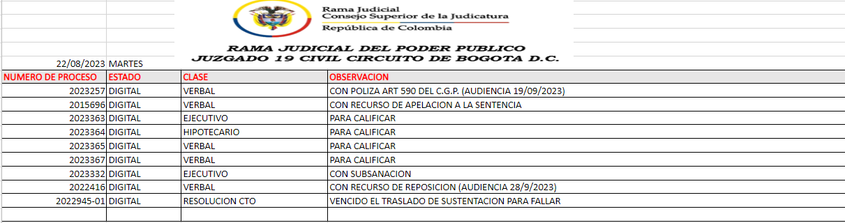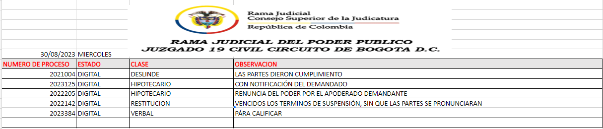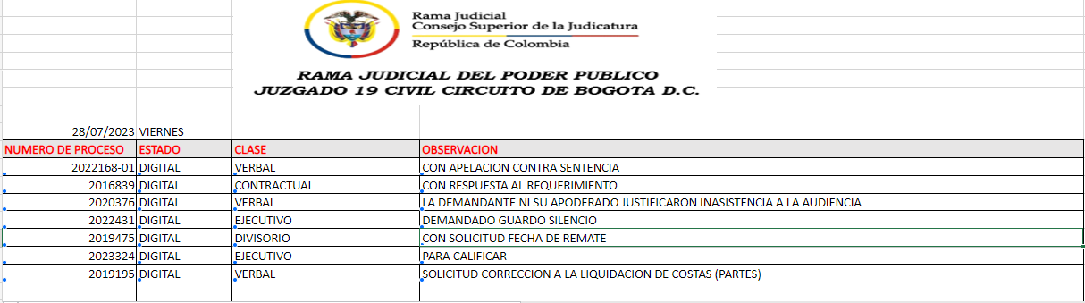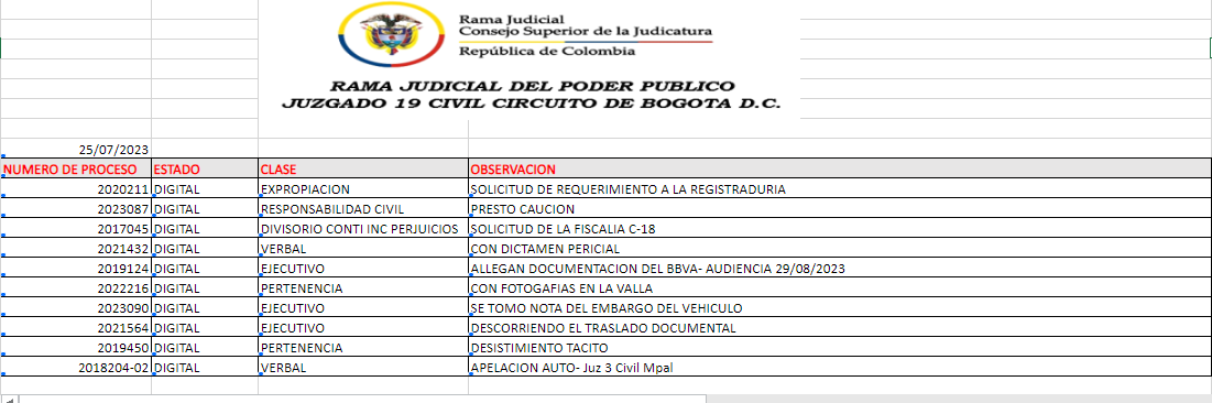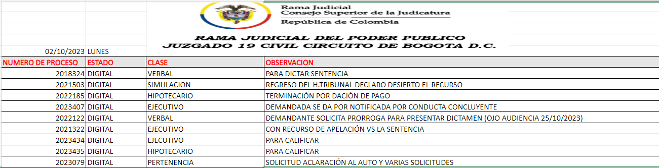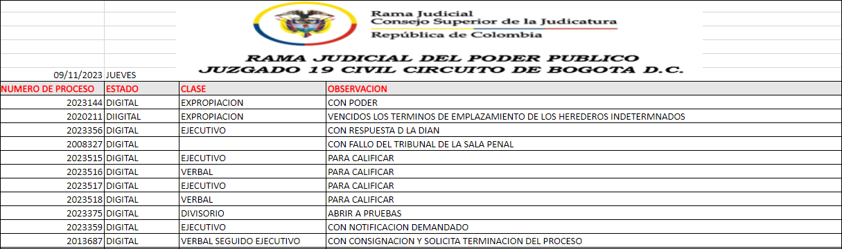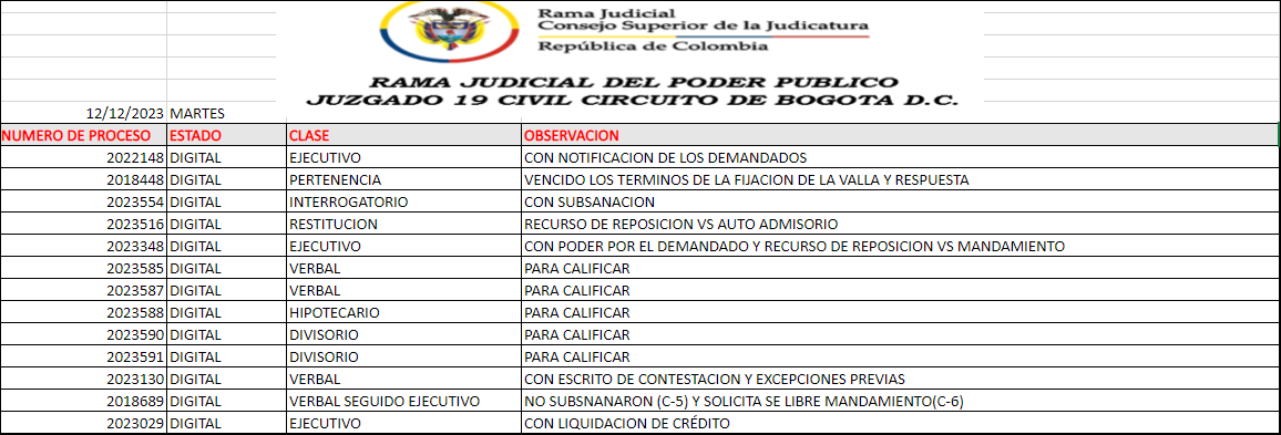 JUZGADO 019 CIVIL DEL CIRCUITO DE BOGOTÁ
