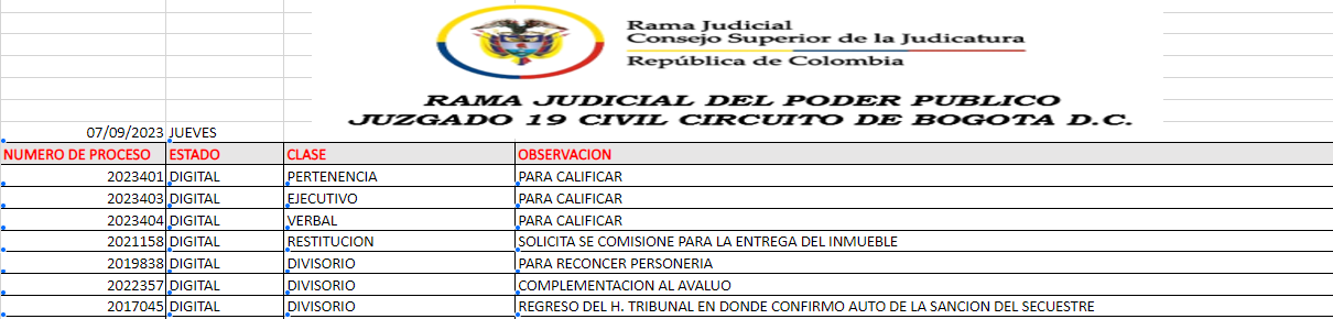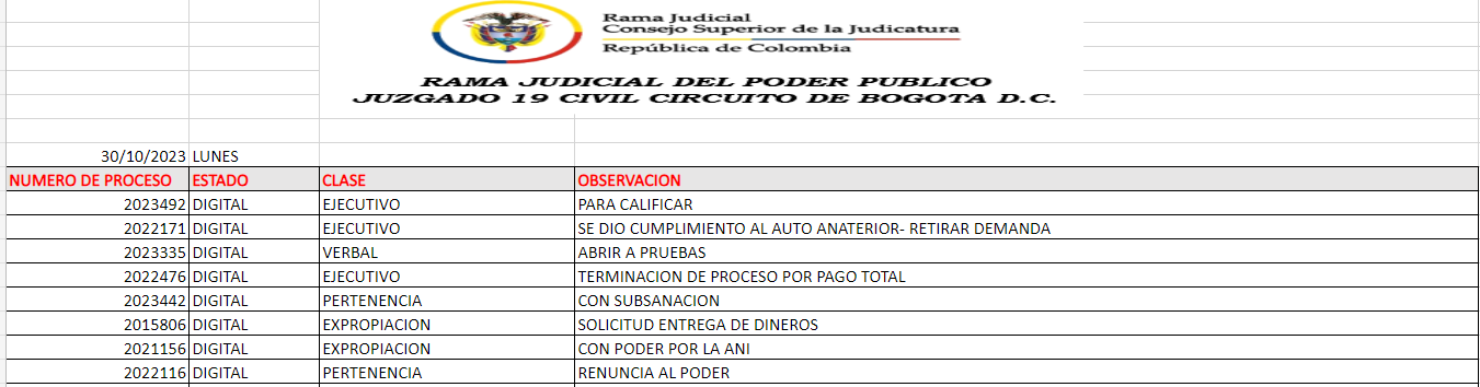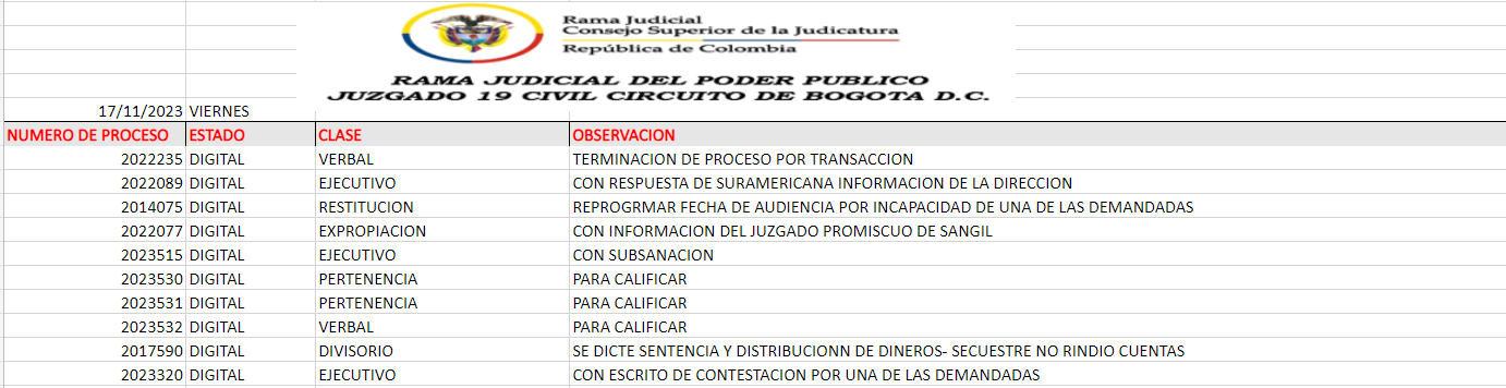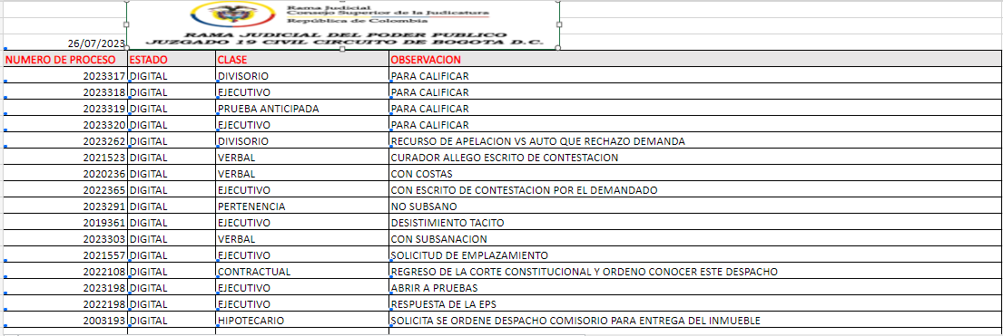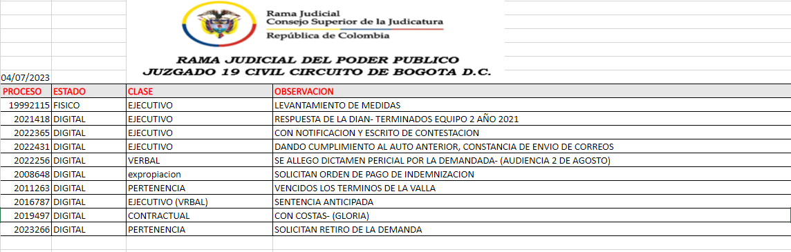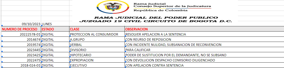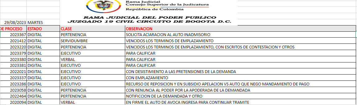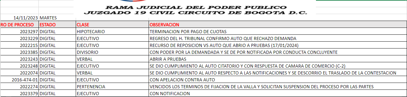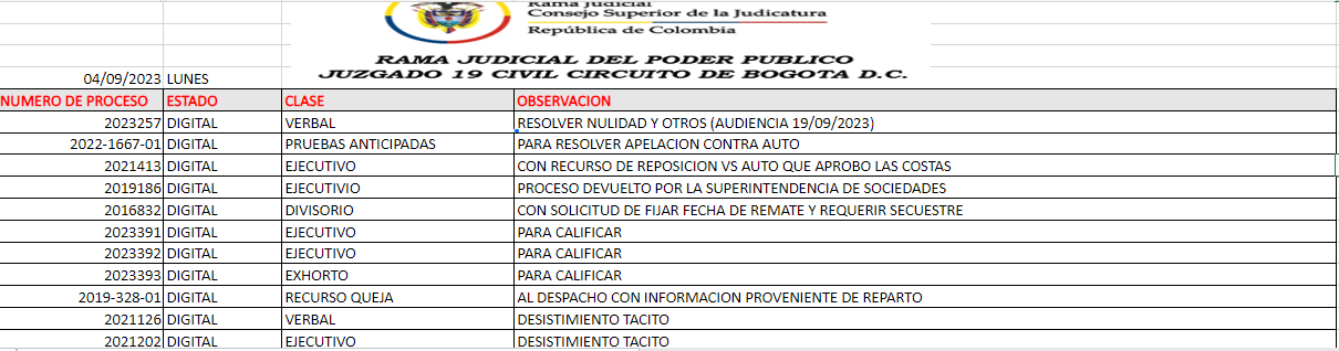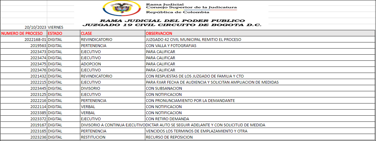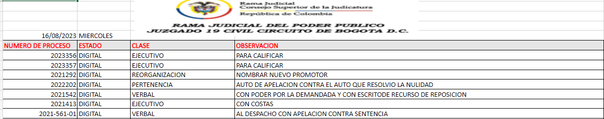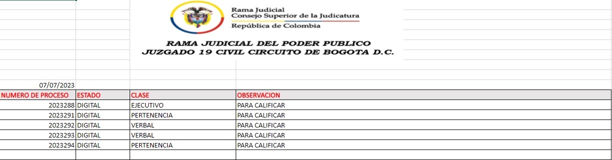 JUZGADO 019 CIVIL DEL CIRCUITO DE BOGOTÁ