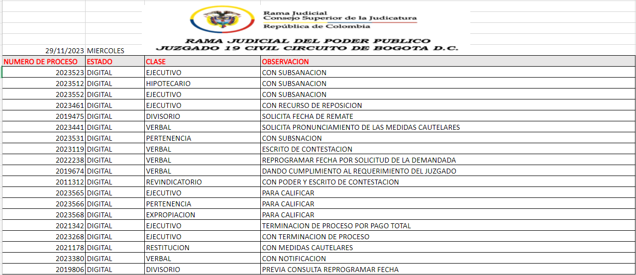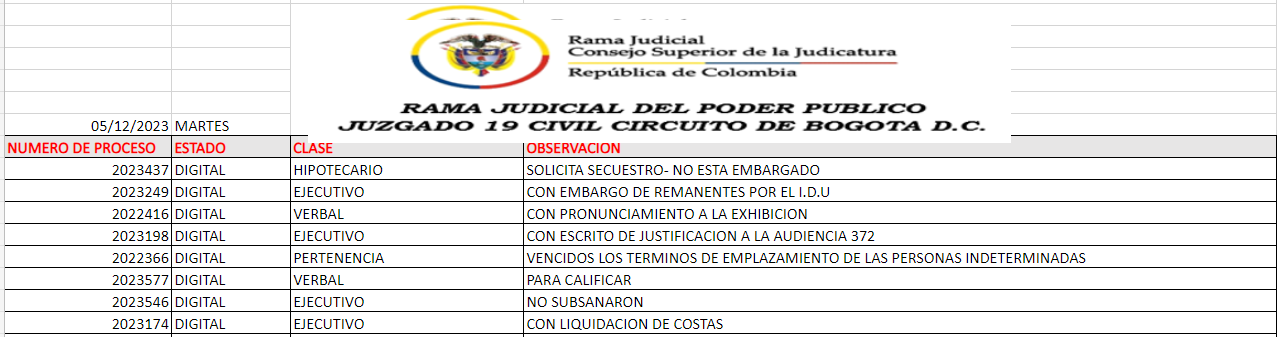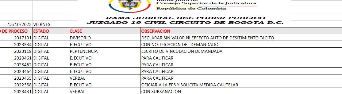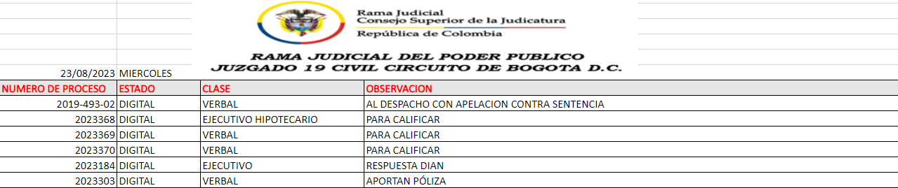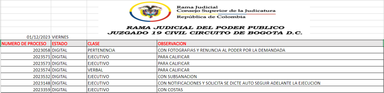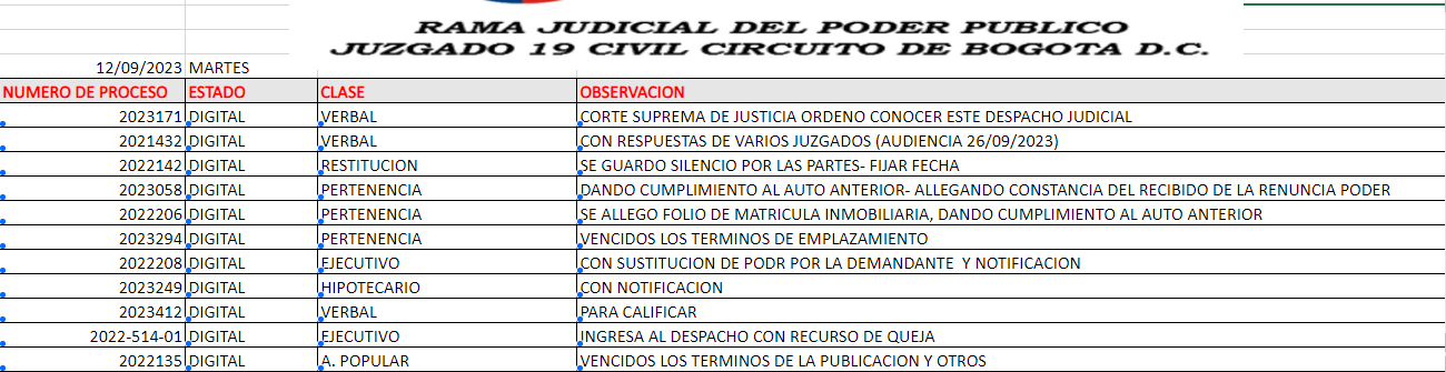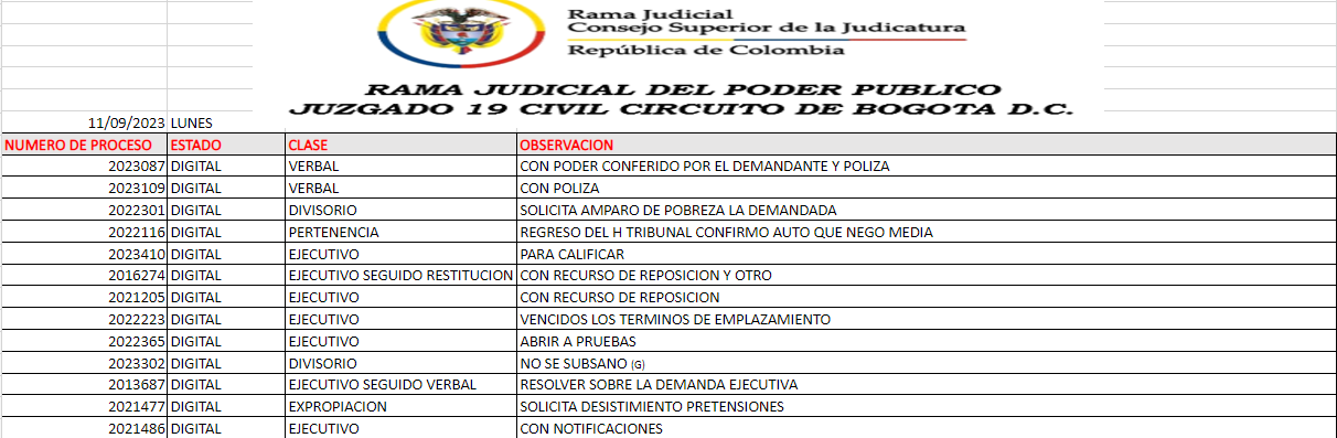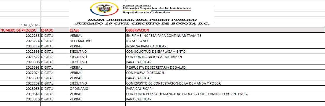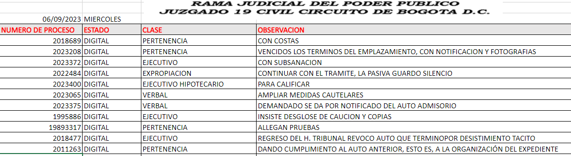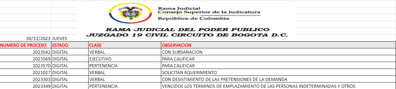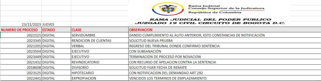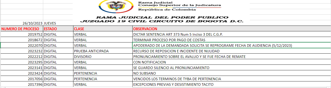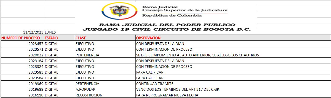 JUZGADO 019 CIVIL DEL CIRCUITO DE BOGOTÁ