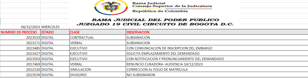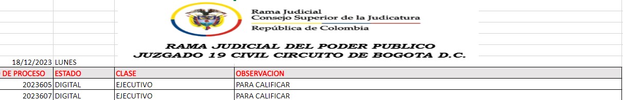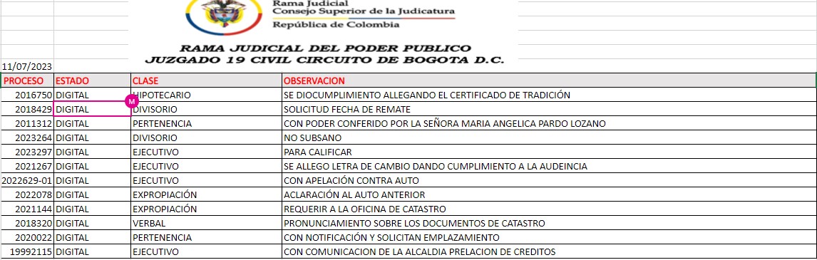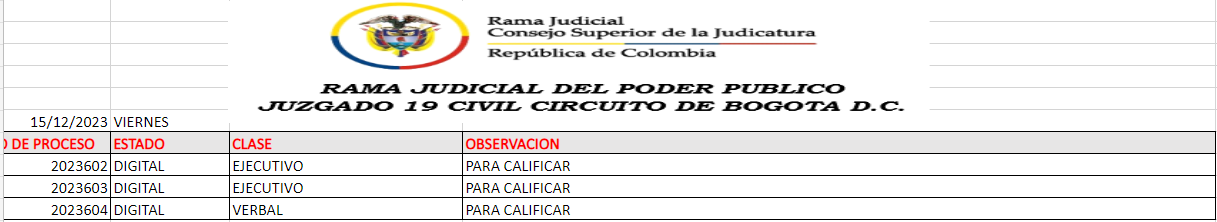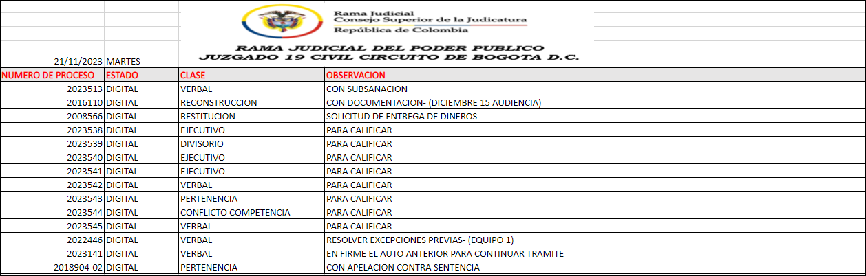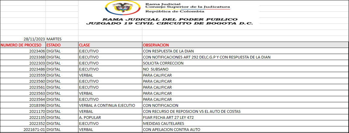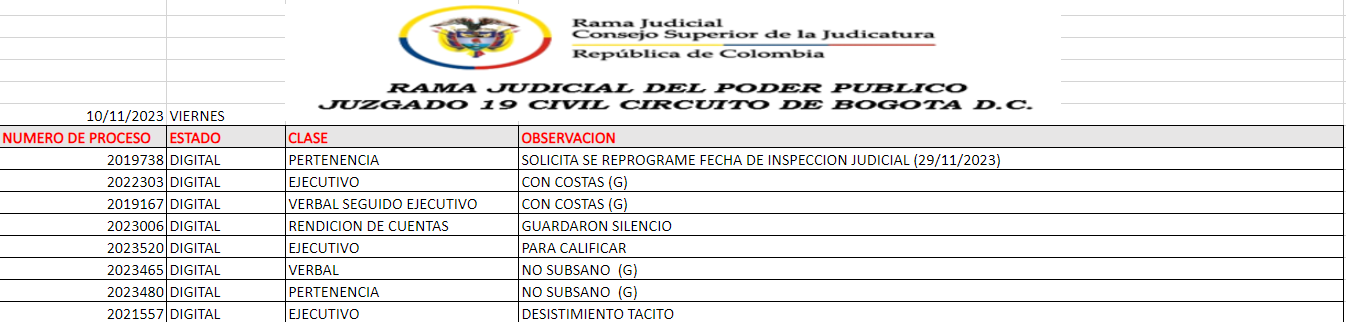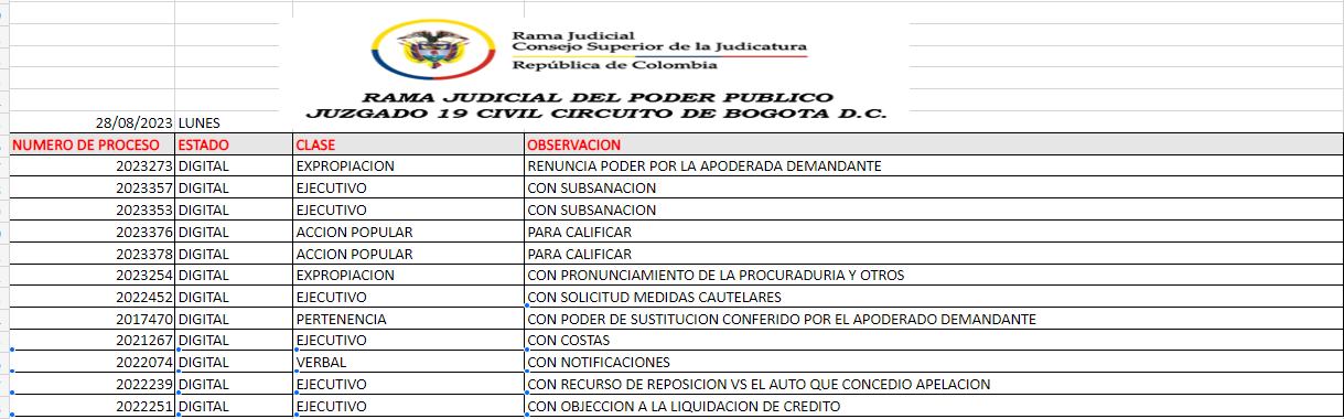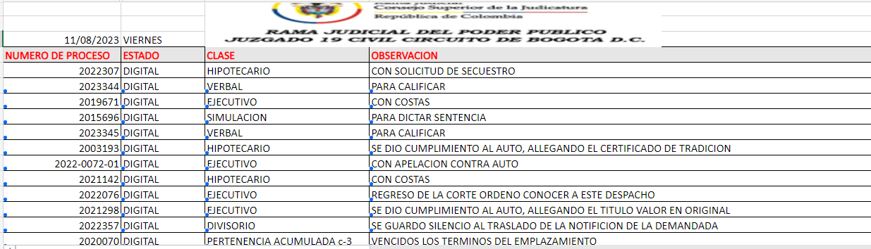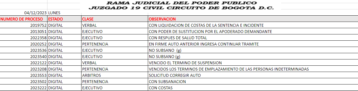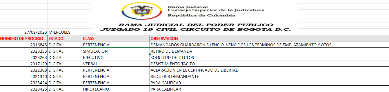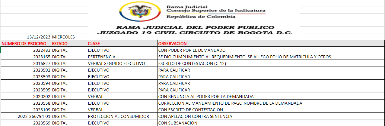 JUZGADO 019 CIVIL DEL CIRCUITO DE BOGOTÁ