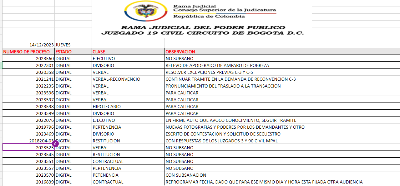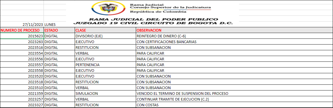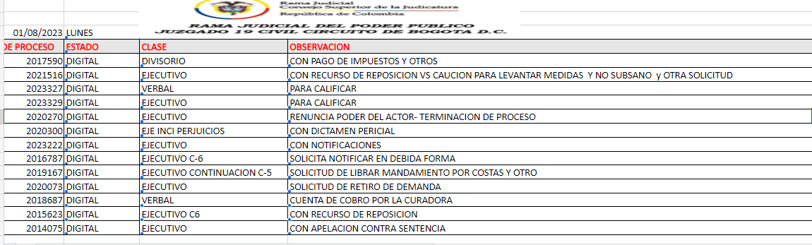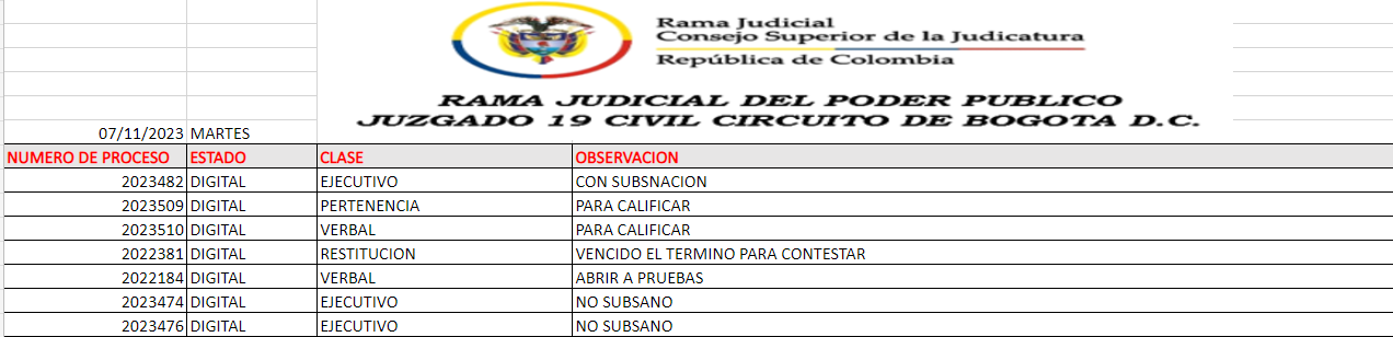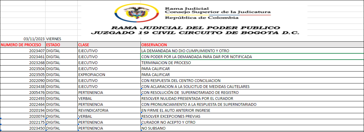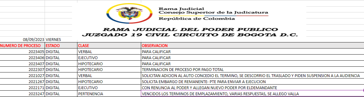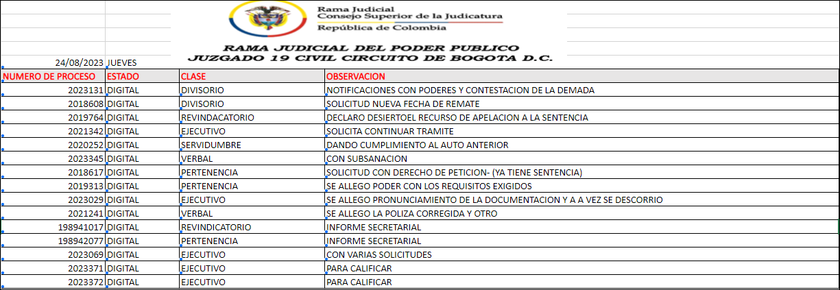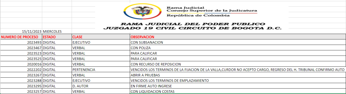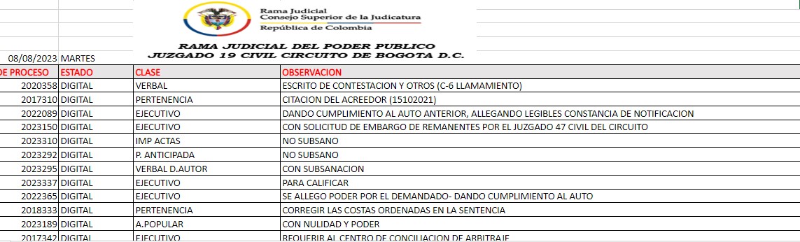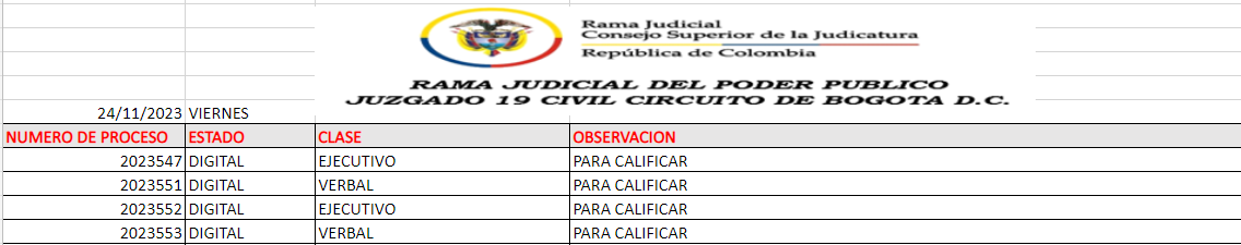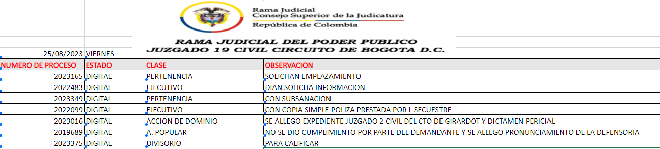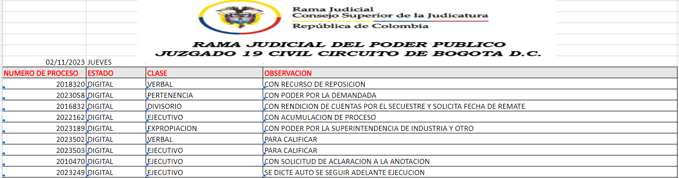 JUZGADO 019 CIVIL DEL CIRCUITO DE BOGOTÁ
