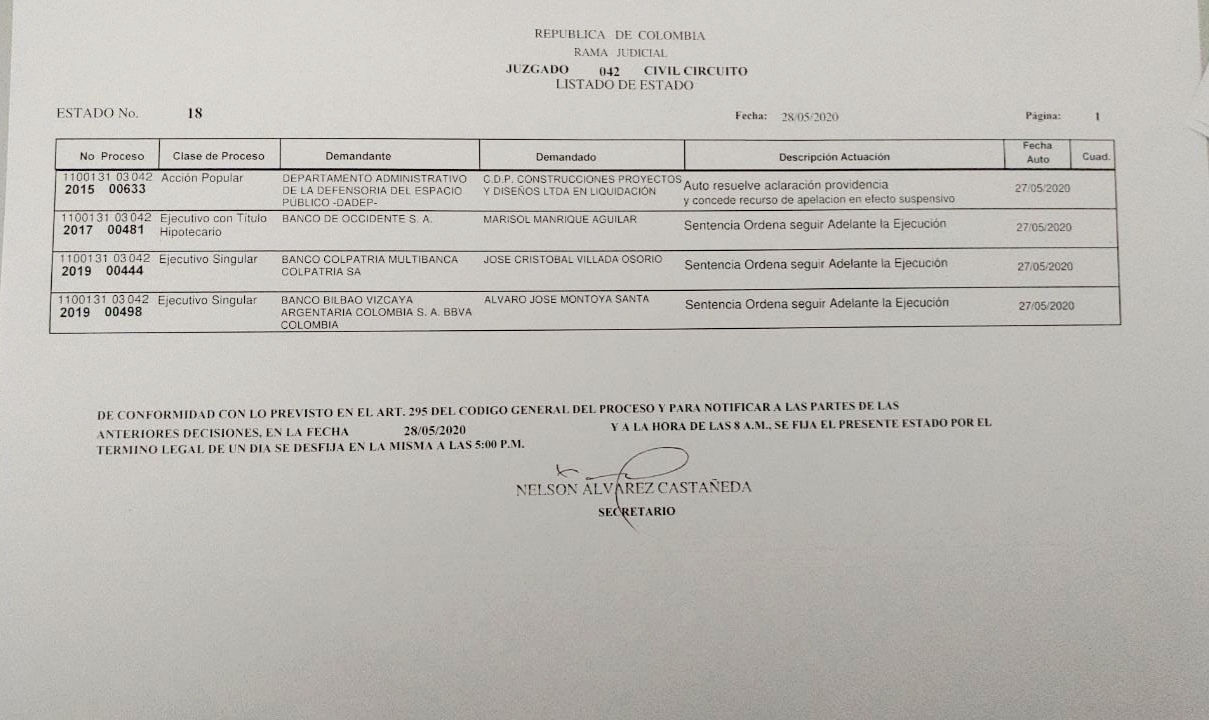 A continuaci�n, se cargar�n los estados electr�nicos, de conformidad con las disposiciones del Consejo Superior de la Judicatura.