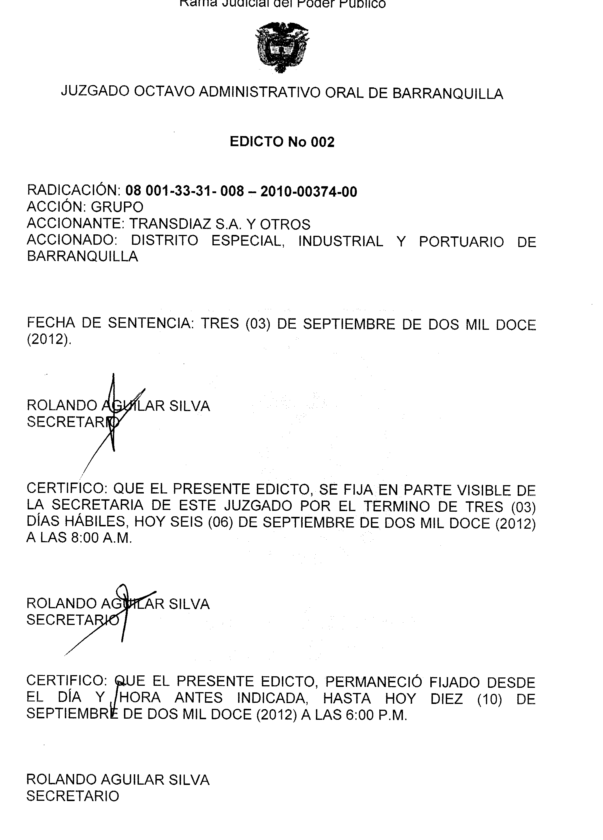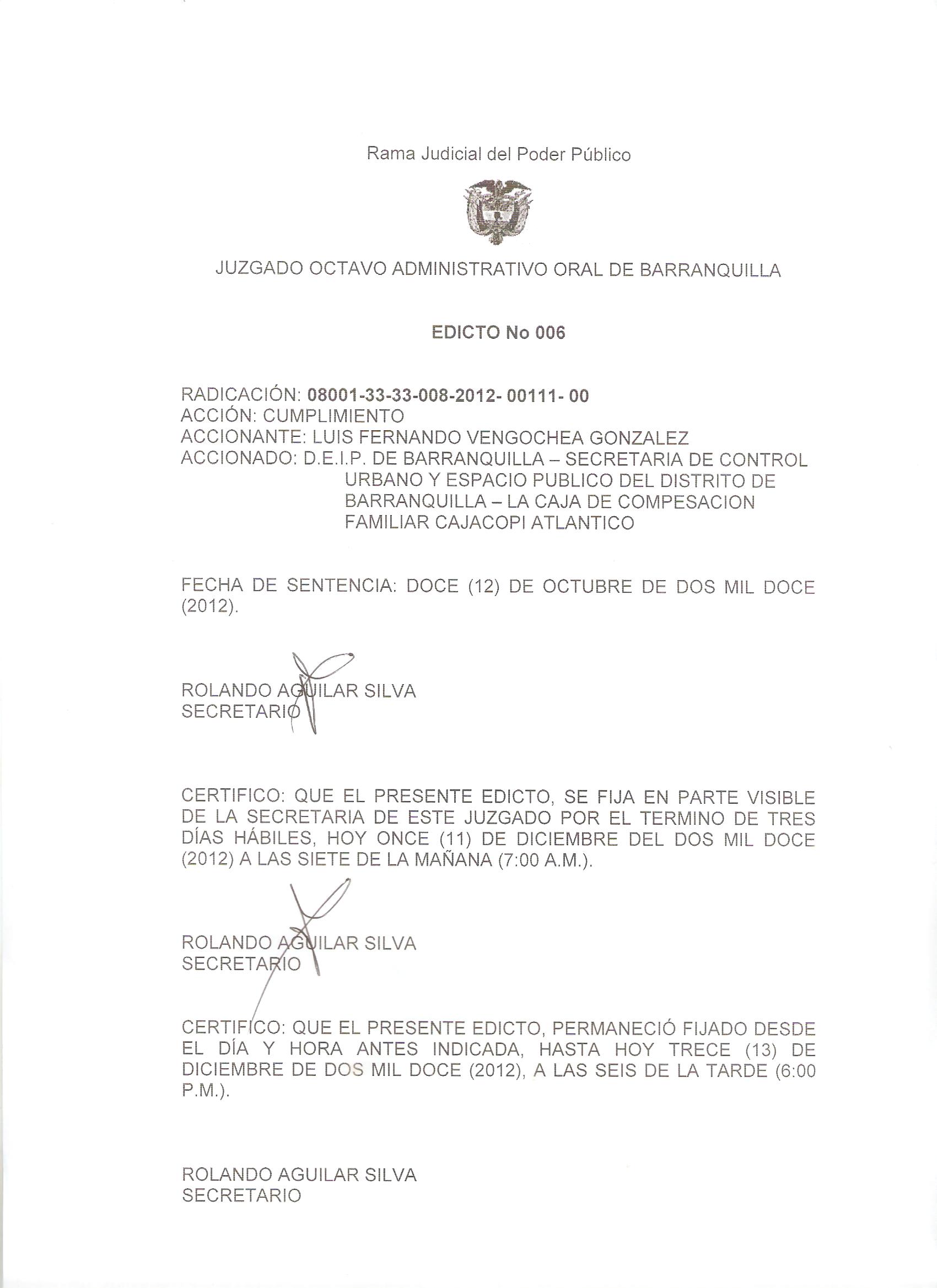 EDICTO No. 6