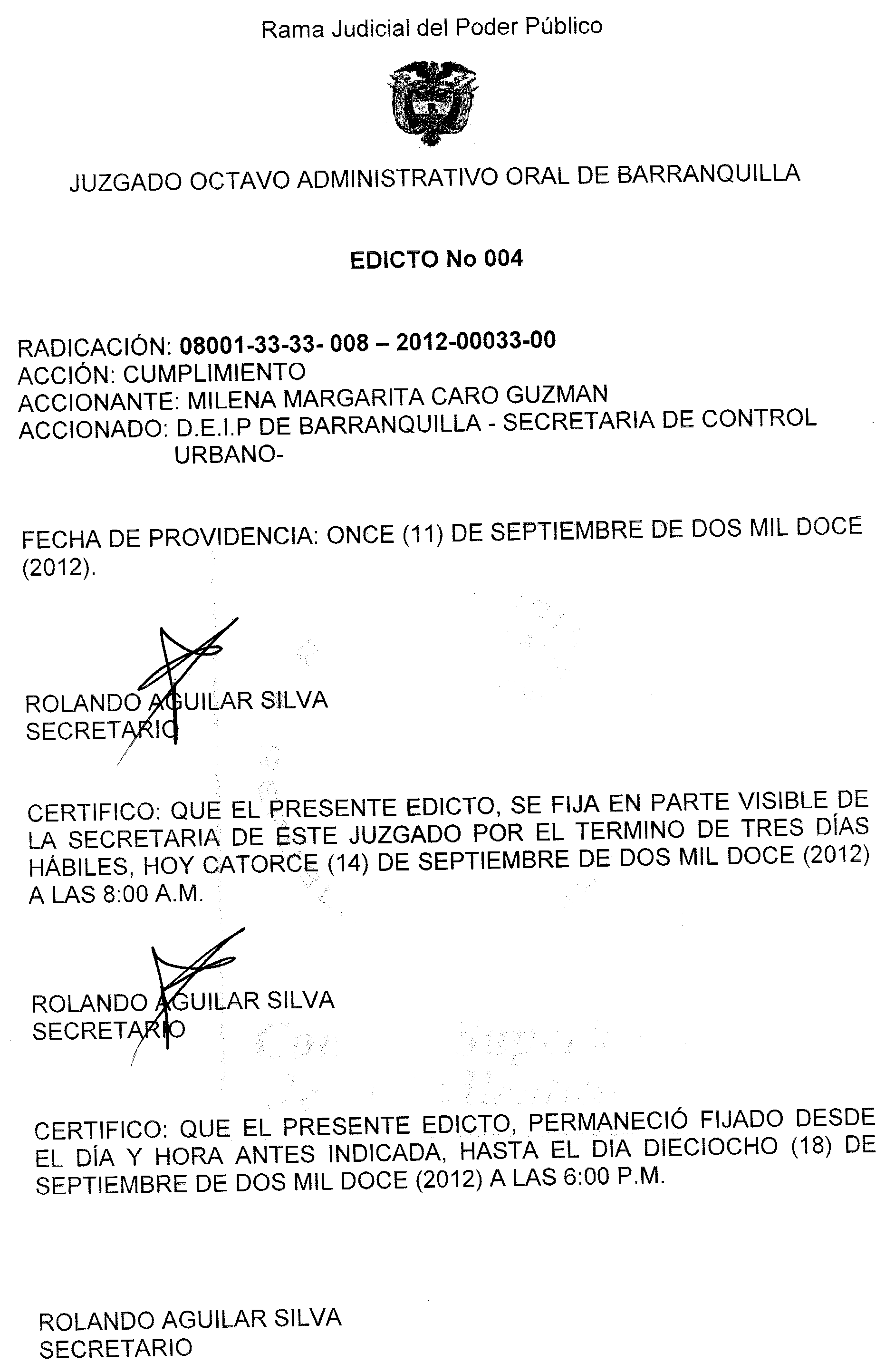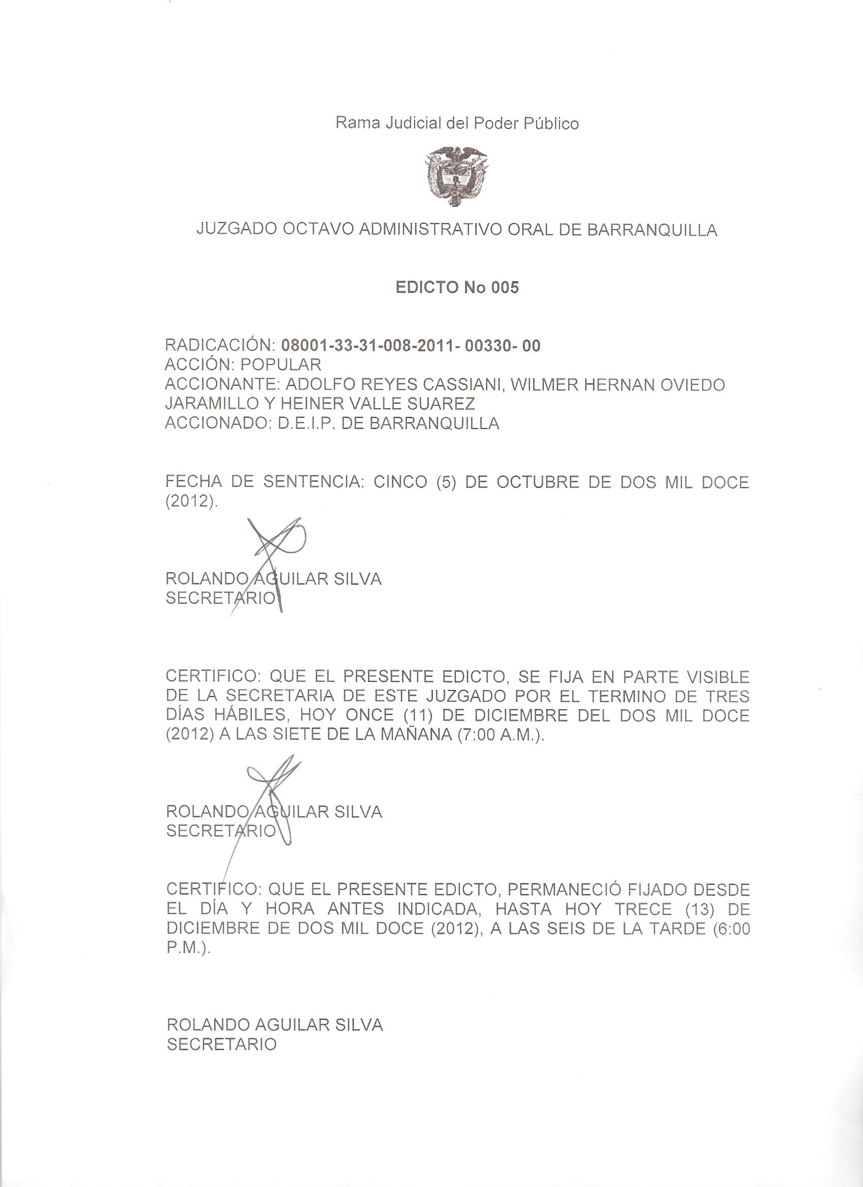 JUZGADO OCTAVO ADMINISTRATIVO ORAL DE BARRANQUILLA