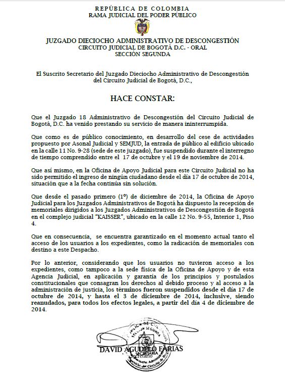 Juzgado 18 Administrativo de Descongestión de Bogotá