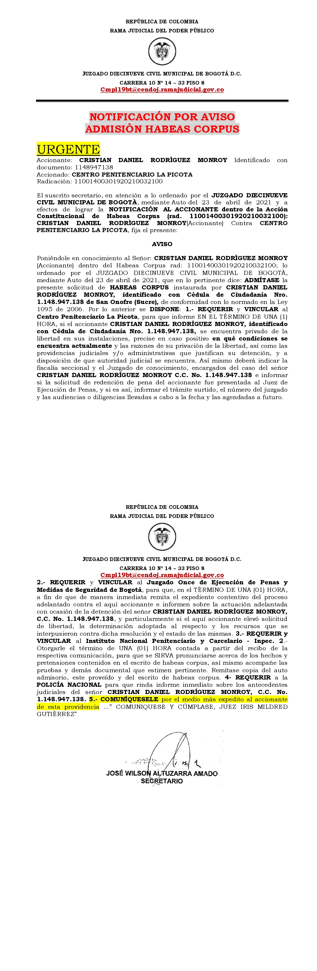 JUZGADO 019 CIVIL MUNICIPAL DE BOGOTÁ